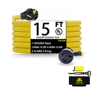 Dryer Extension Cord 3 Prong 30 Amp Nema 10-30P To 10-30R,15 Ft Level 2 Ev Charging 125V/250V Plug Stw 10 Gauge Ul Listed