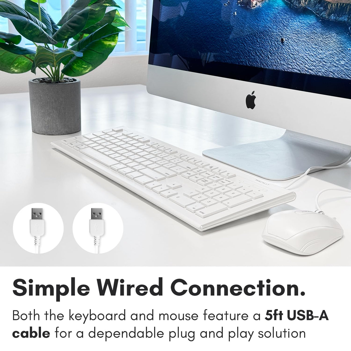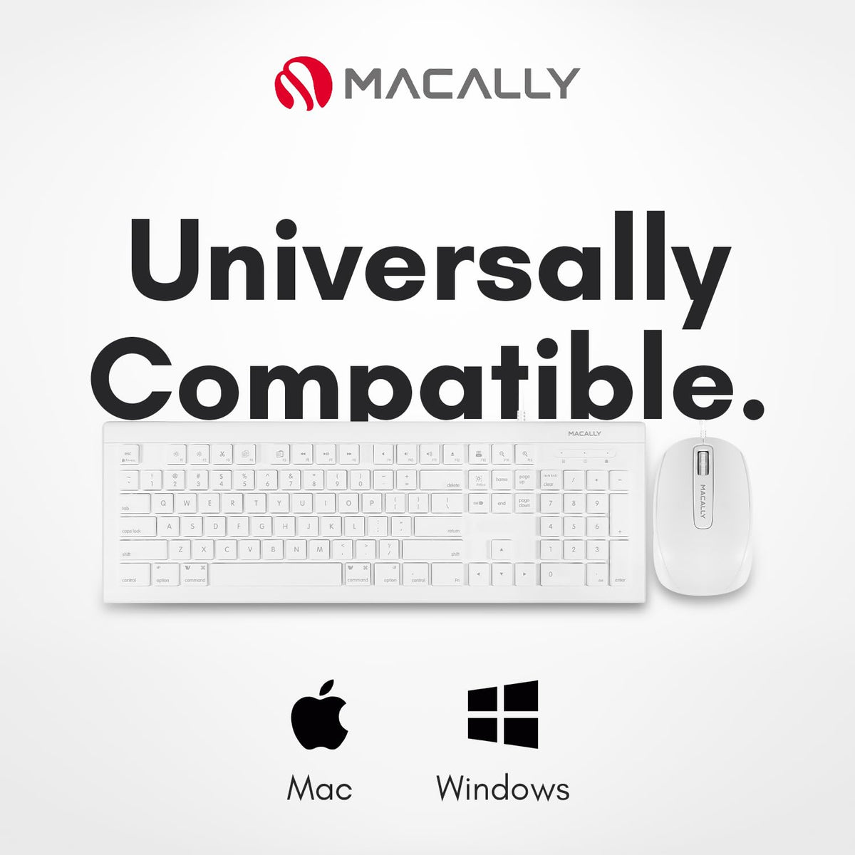 Macally Mkeyecombothe Macally Mkeyecombo Is A Keyboard And Mouse Combo That Aims To Provide An Apple-Like Typing Experience For A Budget Price. It Works For Both Apple And Pcs.Wiredyou Wont Have To Deal With A Weak Connection Between Your Keyboard And Mouse With The Computer Nor Will You Have To Constantly Change Batteries.Keyboard Feellow Profile And Provides A Good Smooth Tactile Feedback Responsemouse Feela Smooth And Responsive Mouse With Three Buttons And A Scroll Wheelcomputer Compatibilitymac Os X V10.6 And Above Including New Macos Sierra Windows 7/8/10 And Above Any Desktop Or Notebook Computer With An Available Usb Portat Macally, We Believe In Our Products. That. Easy-To-Reach Support For Any Of Your Questions.Testimonialsthe Keystrokes Are Actually Softer Than My Last Bluetooth Mac Keyboard, Where My Fingertips Would Get Sore, And This Is Very Feathery Pillow Soft. This Keyboard Is Awesome, Its Essentially A Mac Keyboard For Half The Price. All The Keys Work Just Like A Regular Mac Keyboard Would. Definitely Recommend It. Cool Product For A Cheap Price. Way Better Than Paying Almost $200 For The Magic Keyboard And Mouse From Apple