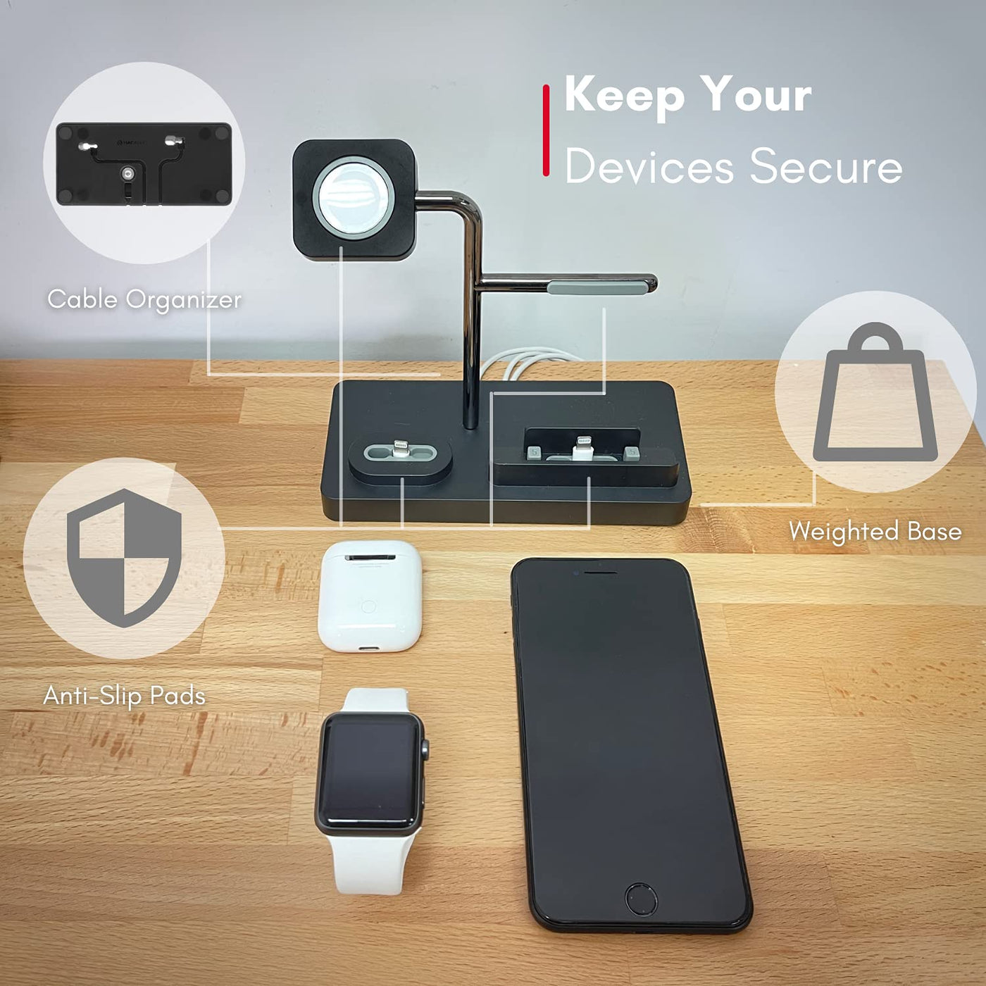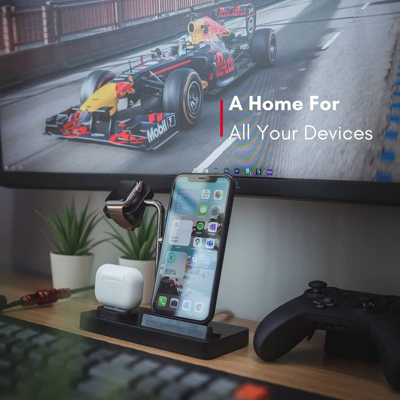 Essential For Iphone, Iwatch, Or Airpod Users. Constantly Misplacing Your Devices? Running Around The House Trying To Find Your Phone? Is Your Nightstand Or Desk Cluttered With Charging Cables? The Macally Mwatchstand31 Has You Covered! The Mwatchstand31 Is A Stylish And Sturdy 3 In 1 Charging Station Designed Specifically For Iphone, Iwatch, And Airpods. Conviently Charge And Display All Your Apple Devices In One Easy To Reach Location. Why Choose The Macally Mwatchstand31? Elegant & Practical: By Combining All Your Chargers To One Stylish Charging Station, Your Nightstand/Desk Will Get A Modern Touch And Be Organized. Fits All Iphones & Most Cases: Works With Most Phone Cases And Comes Complete With 5 Sets Of Spacers To Ensure A Wide Range Of Case Compatibility. Iwatch: Fits All Iwatch Models, Band Sizes And Cases. The Circle Cutout And Cable Slot Perfectly Hides The Cable And Charger From Plain Sight. Use (38Mm & 42Mm) Chargers. Airpods: Universal Base For Airpods 1/2 Gen And Pro Version. So What Are You Waiting For? Take Charge Of Your Devices And Add To Cart Now!