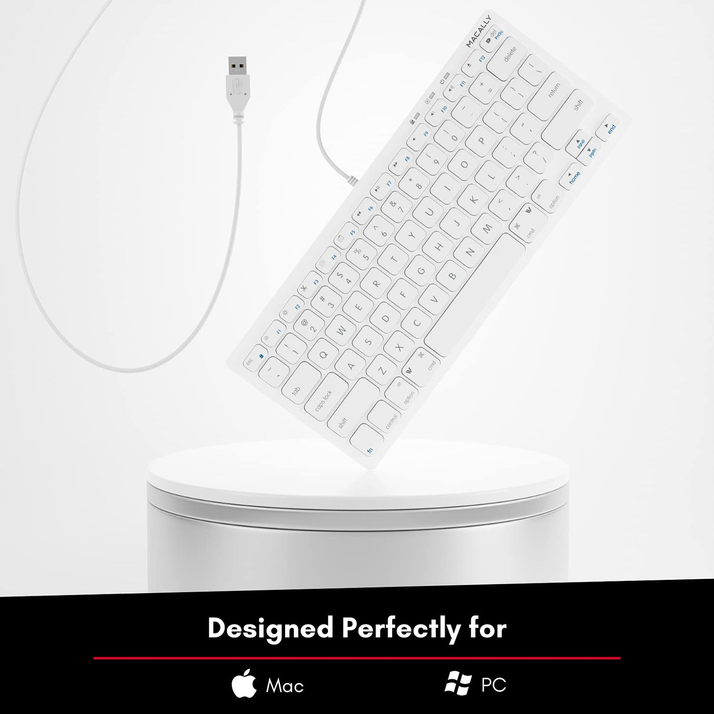 Macally Slimkeyc Usb Wired Compact Computer Keyboard Compact The Macally Slimkeyc Is A 78 Key Compact Usb Wired Keyboard That Aims To Provide An Apple-Like Typing Experience That Works For Both Apple And Pcs. Wired You Wont Have To Deal With A Weak Connection Between Your Keyboard And The Computer Nor Will You Have To Constantly Change Batteries. Keyboard Feel Low Profile And Provides A Good Smooth Tactile Feedback Response That Wont Take Up Much Desk Space Budget Replacement More Affordable Than An Apple Keyboard Computer Compatibility * Mac Os X V10.6 And Above Including New Macos Sierra * Windows 7/8/10 And Above * Any Desktop Or Notebook Computer With An Available Usb Port Worry-Free Warranty At Macally, We Believe In Our Products. Thats Why We Back Them All With A One-Year Warranty And Provide Friendly, Easy-To-Reach Support For Any Of Your Questions