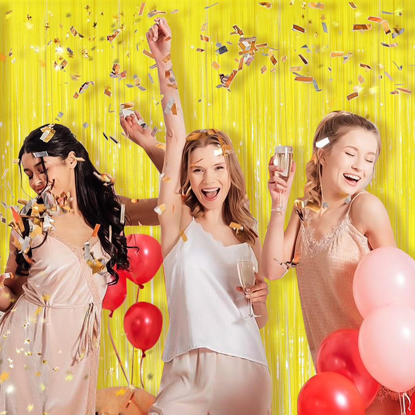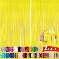 Macaron Yellow Metallic Tinsel Foil Fringe Curtains, 2 Pack 3.3X8.3 Feet Party Streamer For Birthday Party Decorations, Hallowee