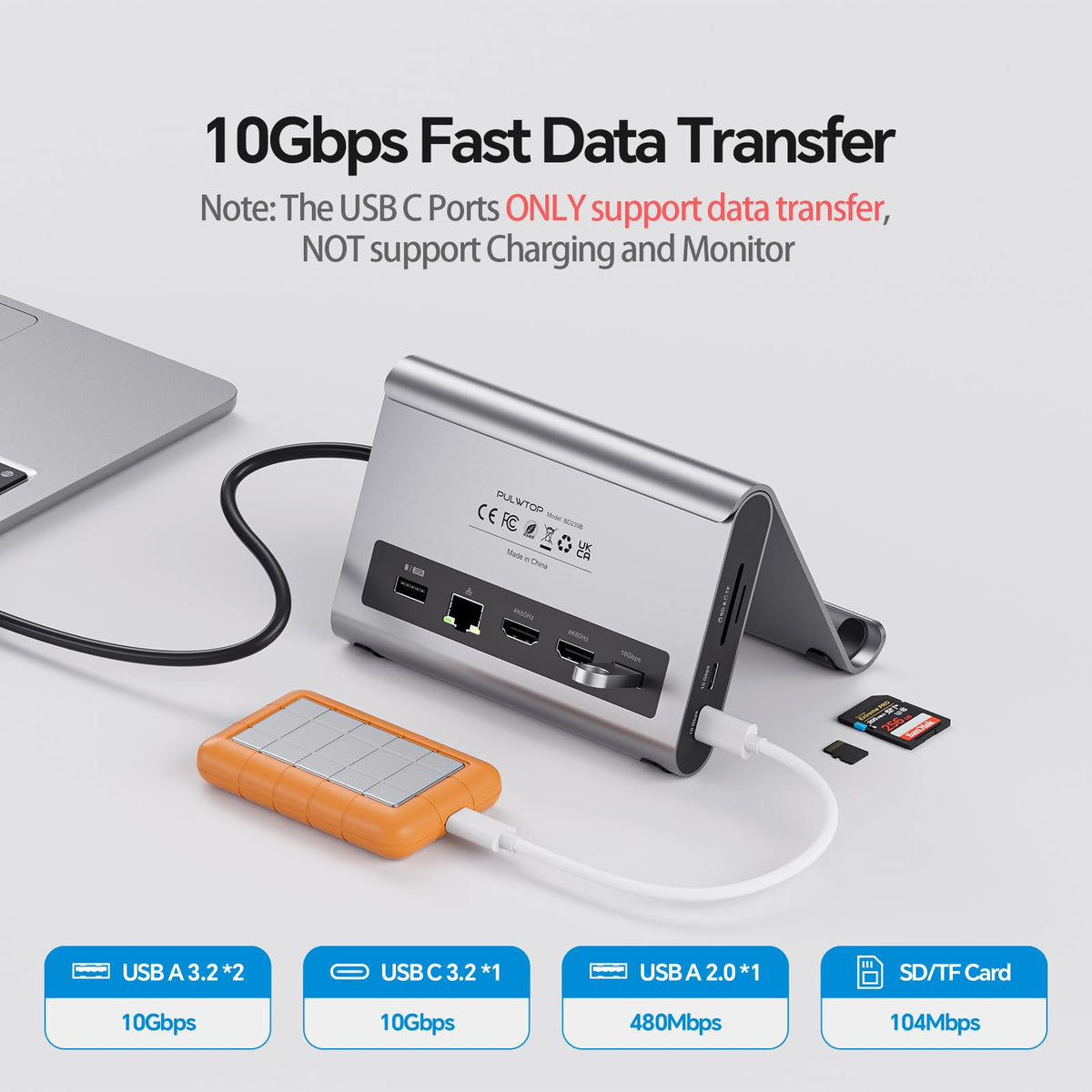 Macbook Pro Docking Station Dual Monitor 4K@60Hz For Macbook Pro/Air M3 Pro/M4, Pulwtop Usb C Docking Station Stand Laptop Dock With 2 Hdmi, Pd, Ethernet, Usb A/C 10Gbps, Audio, Sd/Tf, Usb 2.0