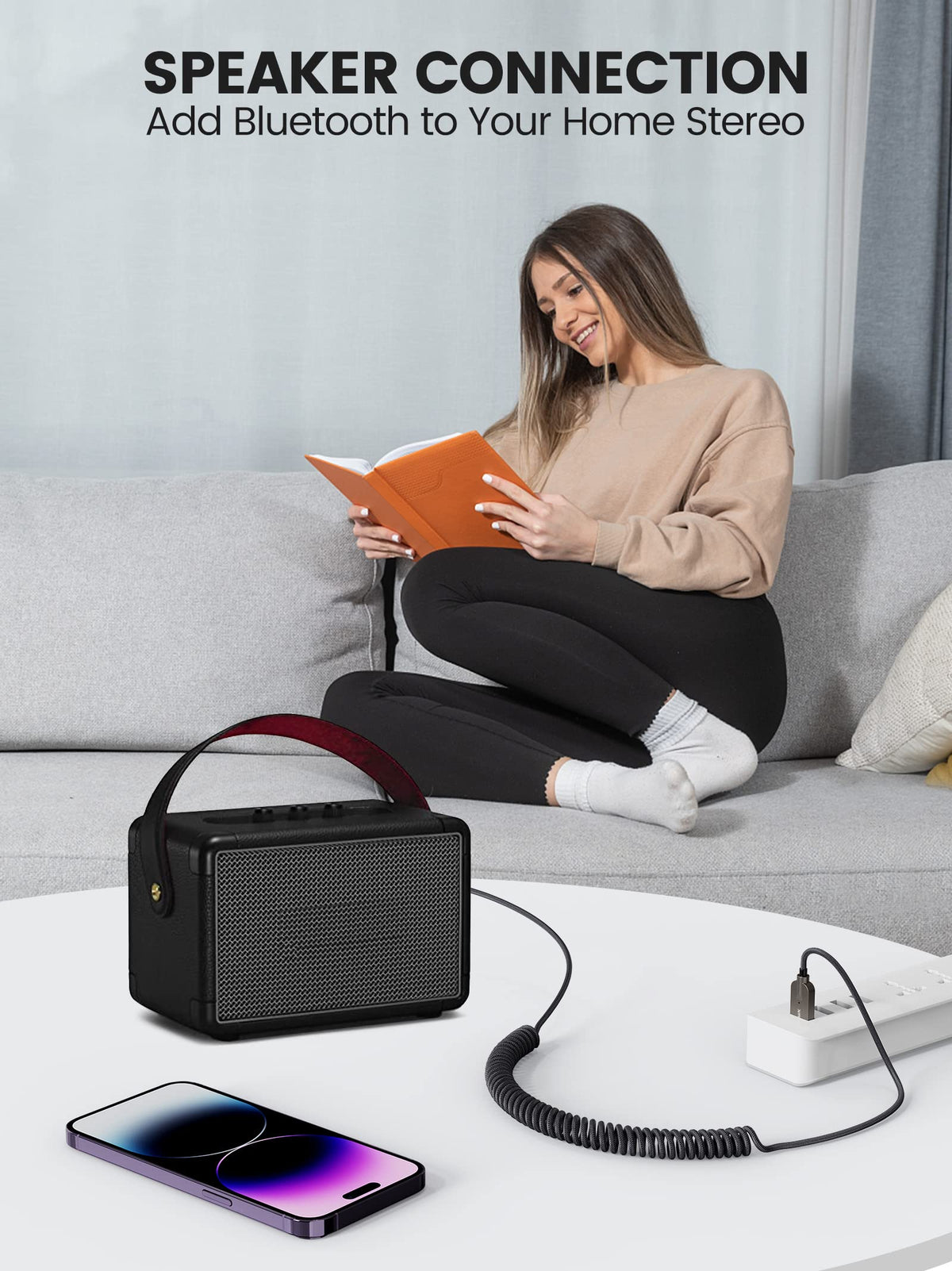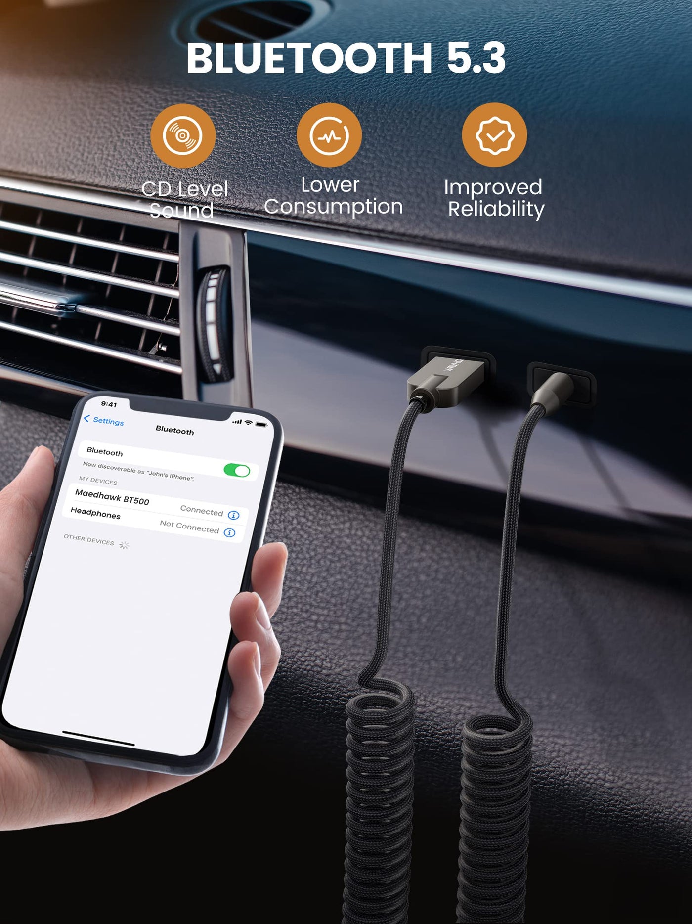 Maedhawk Aux Bluetooth Adapter For Car, Aux To Bluetooth 5.3 Adapter For Music/Hands Free Calls [Stronger Mic], 3.5Mm Usb Bluetooth Receiver For Car Audio, Home Stereo, Speaker