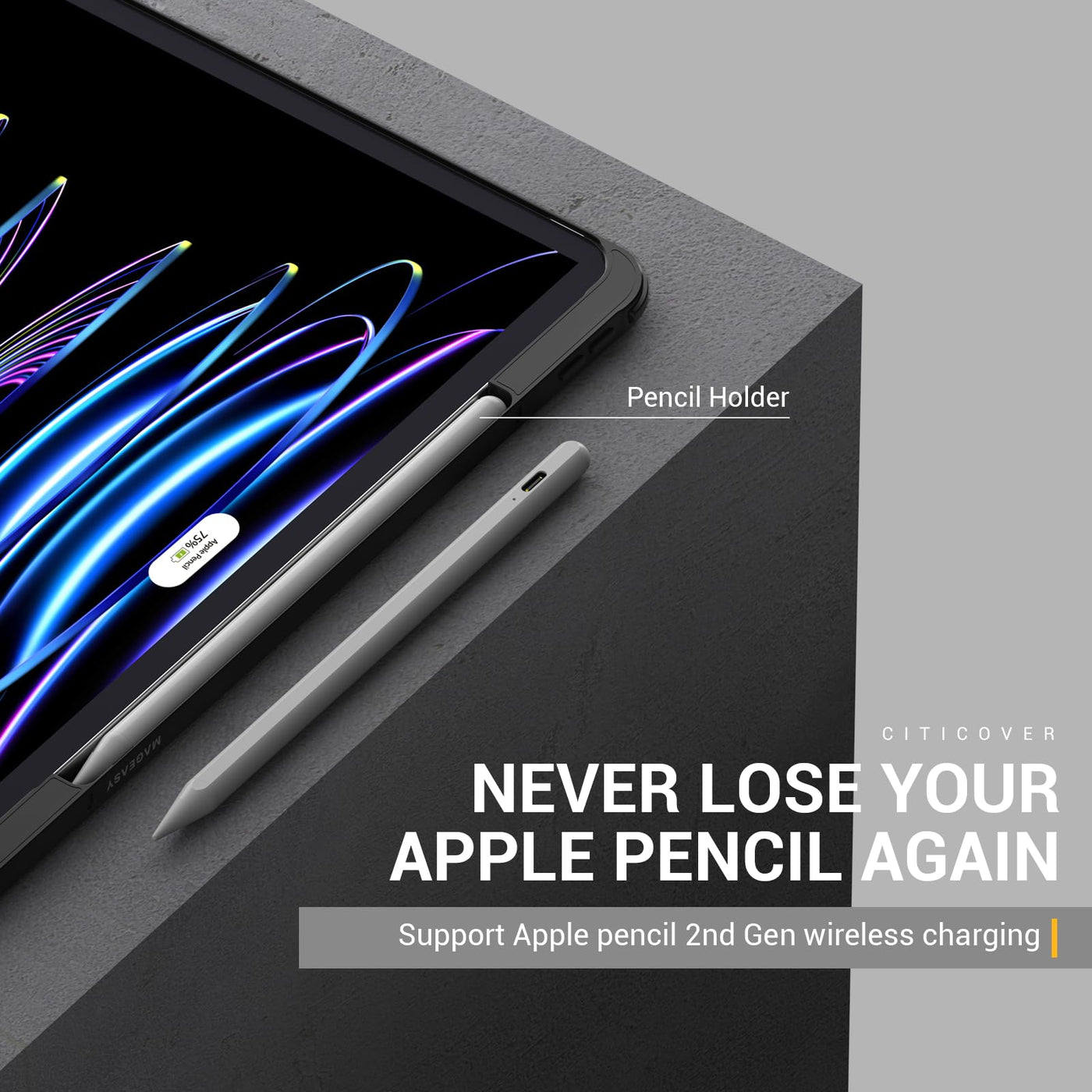 Q: Can I charge my Apple Pencil while it's in the CitiCover?A: Absolutely! The CitiCover features a dedicated pencil slot that not only secures your Apple Pencil but also supports wireless charging for the Apple Pencil 2nd Generation.