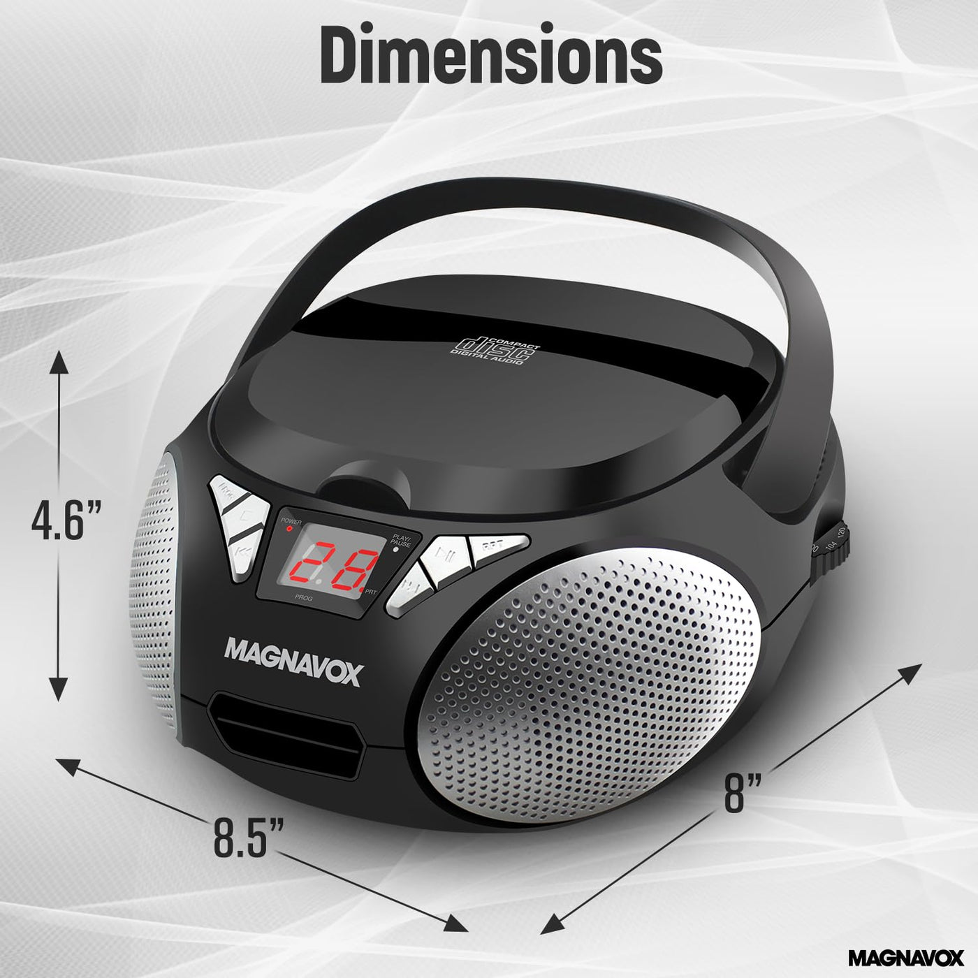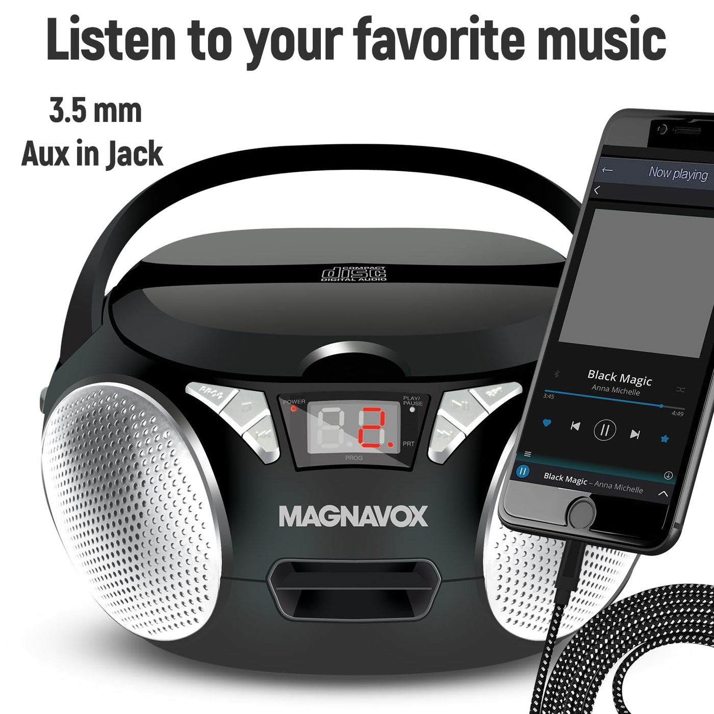 Magnavox Md6924 Portable Top Loading Cd Boombox With Am/Fm Stereo Radio In Black | Cd-R/Cd-Rw Compatible | Led Display | Aux Por