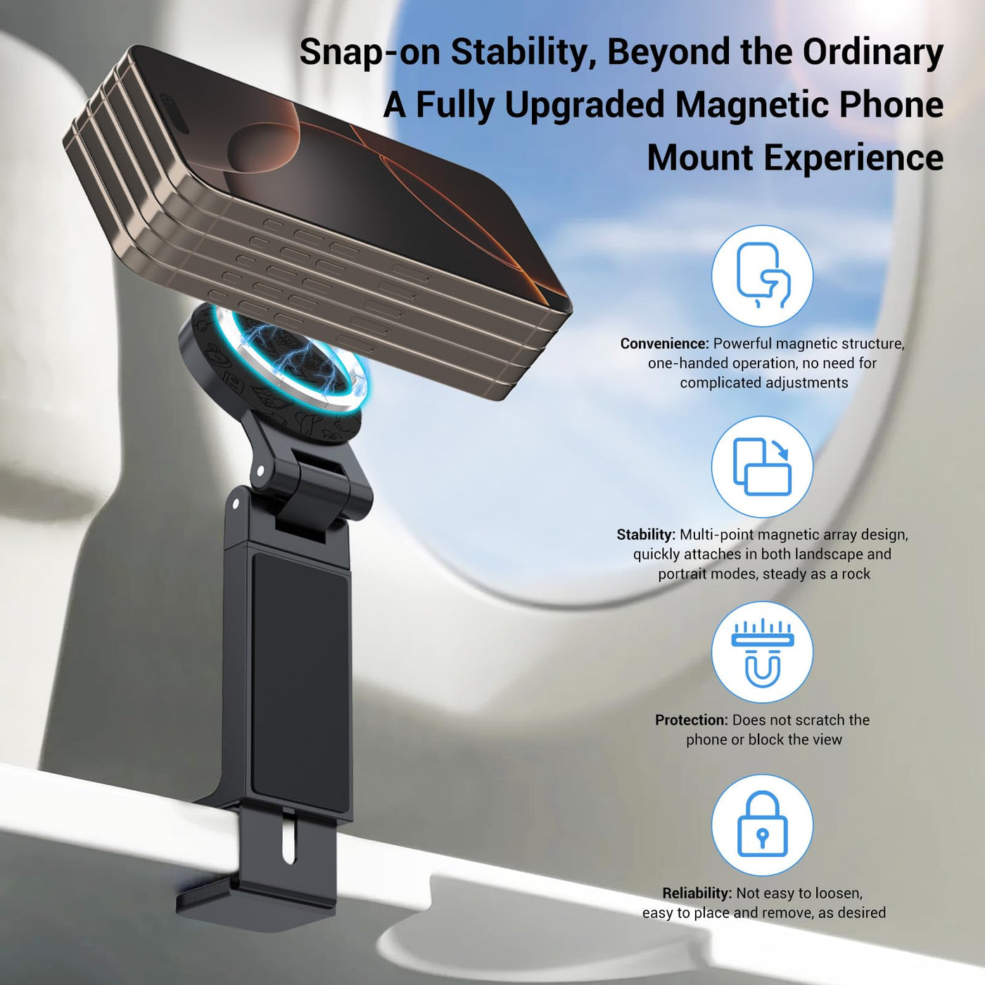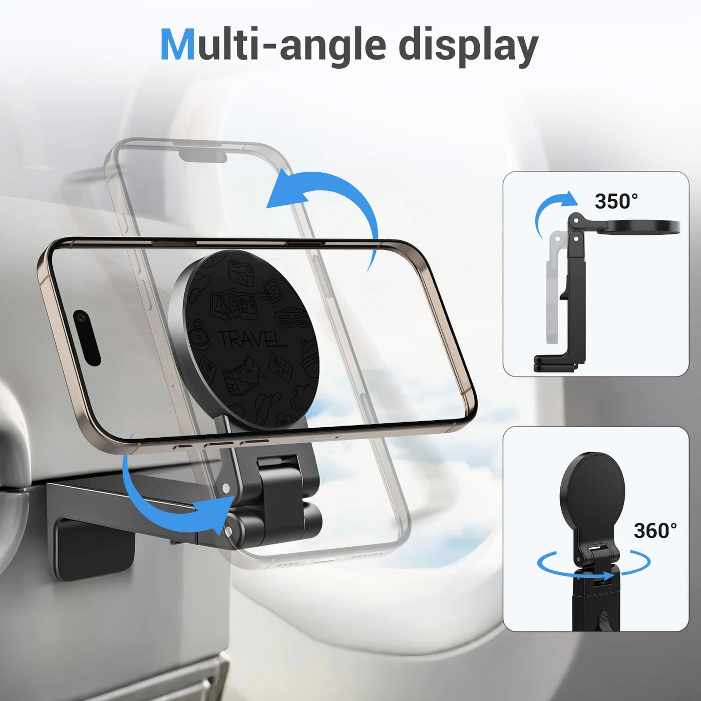 Magnetic Airplane Phone Holder, Universal Travel Phone Mount With Magnetic Ring, 360 Rotatable & Adjustable, Foldable Compact St