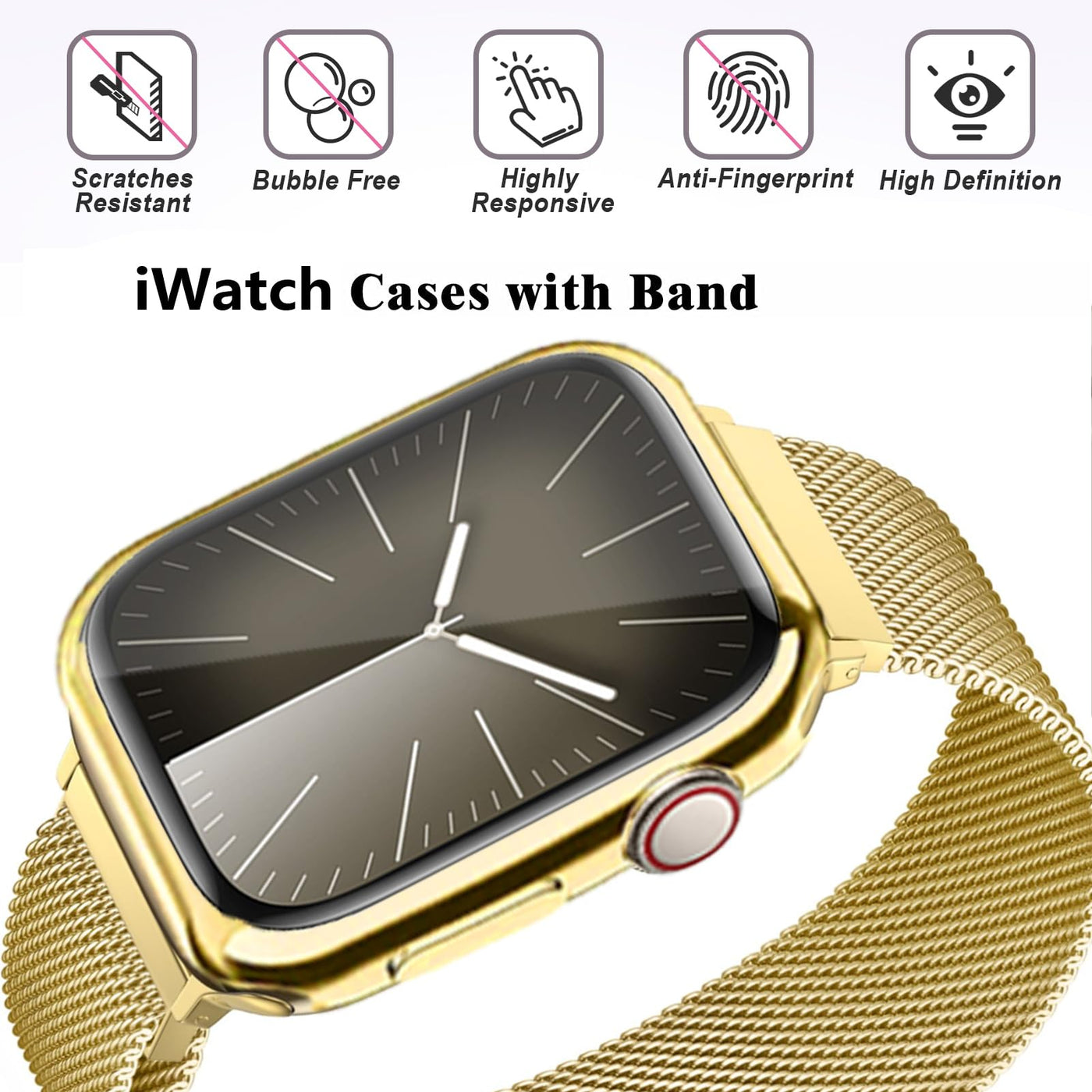 Case+Strap For Apple Watch Band 42Mm 46Mm 40Mm 44Mm 41Mm 45Mm Iwatch Bands For Women/Men,Milanese Loop Magnetic Stainless Steel Metal Bracelet Wristband For Apple Watch Series 10 9 8 7 6 5 4 Se/2Nd Ultra/2 49Mm Compatible Model: 46Mm 42Mm Bands Compatible With Apple Watch Series 10(2024) 49Mm Bands Compatible With Apple Watch Ultra(2022)Ultra2(2023) 45Mm 41Mm Bands Compatible With Apple Watch Series 9(2023)Series 8(2022)Series 7 (2021) 44Mm 40Mm Bands Compatible With New Apple Watch Se & Series 6 (2020) 44Mm 40Mm Bands Compatible With Apple Watch Series 5 (2019) & Series 4 (2018) 42Mm 38Mm Bands Compatible With Apple Watch Series 3 (2017) & Series 2 (2016) & Series 1 (2015) Features:Designed To Add Overall Elegance To Your Pretty Watch,The Magnetic Closure Metal Watch Strap Comes With A Iwatch Case With Screen Protector, The Watchband Is Cut And Crafted From Premium 304 Stainless Steel, High-Tech Surface, Luxury, Nobility And Durability, As Every Detail Has Been Taken Into Account In The Manufacturing Process In Terms Of Workmanship, Design And Aesthetics. What You Will Get: 1* Official Milanese Loop Band And 2 * Screen Protector Case For Apple Watch Series Se 10 9 8 7 6 5 4 3 2 1 Ultra Ultra2