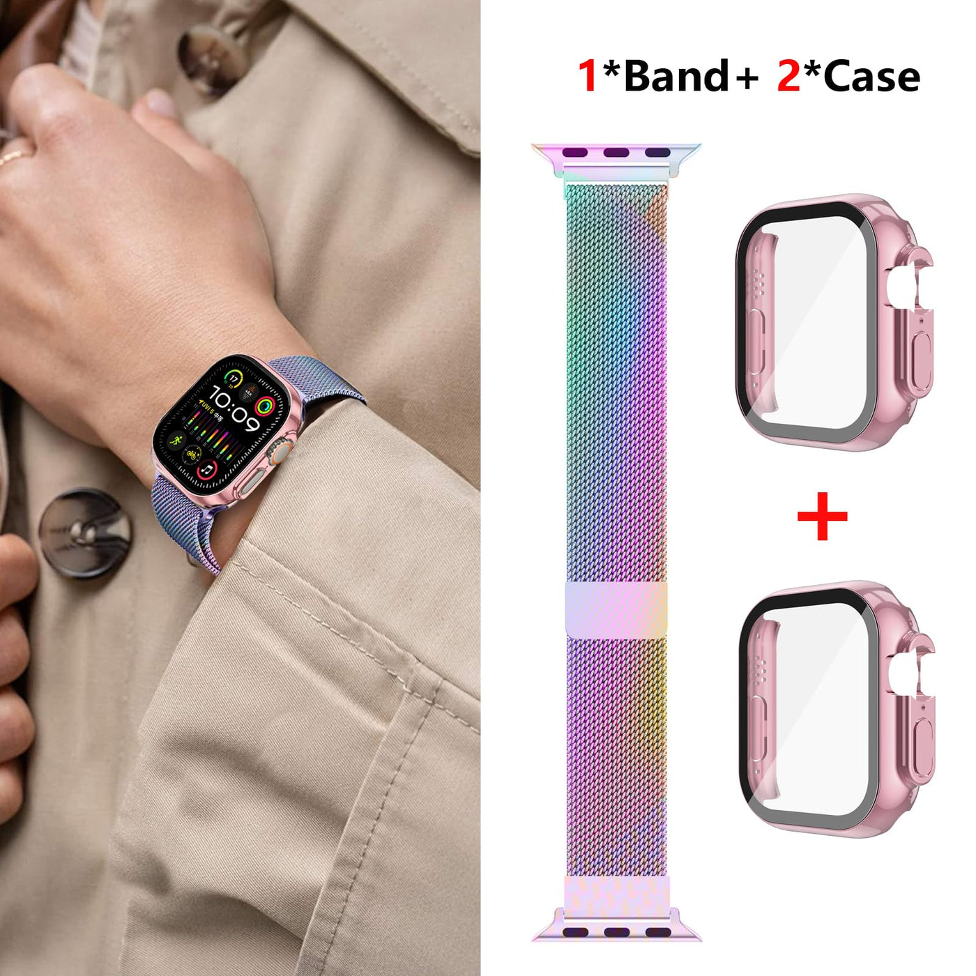 Case+Strap For Apple Watch Band 42Mm 46Mm 40Mm 44Mm 41Mm 45Mm Iwatch Bands For Women/Men,Milanese Loop Magnetic Stainless Steel Metal Bracelet Wristband For Apple Watch Series 10 9 8 7 6 5 4 Se/2Nd Ultra/2 49Mm Compatible Model: 46Mm 42Mm Bands Compatible With Apple Watch Series 10(2024) 49Mm Bands Compatible With Apple Watch Ultra(2022)Ultra2(2023) 45Mm 41Mm Bands Compatible With Apple Watch Series 9(2023)Series 8(2022)Series 7 (2021) 44Mm 40Mm Bands Compatible With New Apple Watch Se & Series 6 (2020) 44Mm 40Mm Bands Compatible With Apple Watch Series 5 (2019) & Series 4 (2018) 42Mm 38Mm Bands Compatible With Apple Watch Series 3 (2017) & Series 2 (2016) & Series 1 (2015) Features:Designed To Add Overall Elegance To Your Pretty Watch,The Magnetic Closure Metal Watch Strap Comes With A Iwatch Case With Screen Protector, The Watchband Is Cut And Crafted From Premium 304 Stainless Steel, High-Tech Surface, Luxury, Nobility And Durability, As Every Detail Has Been Taken Into Account In The Manufacturing Process In Terms Of Workmanship, Design And Aesthetics. What You Will Get: 1* Official Milanese Loop Band And 2 * Screen Protector Case For Apple Watch Series Se 10 9 8 7 6 5 4 3 2 1 Ultra Ultra2