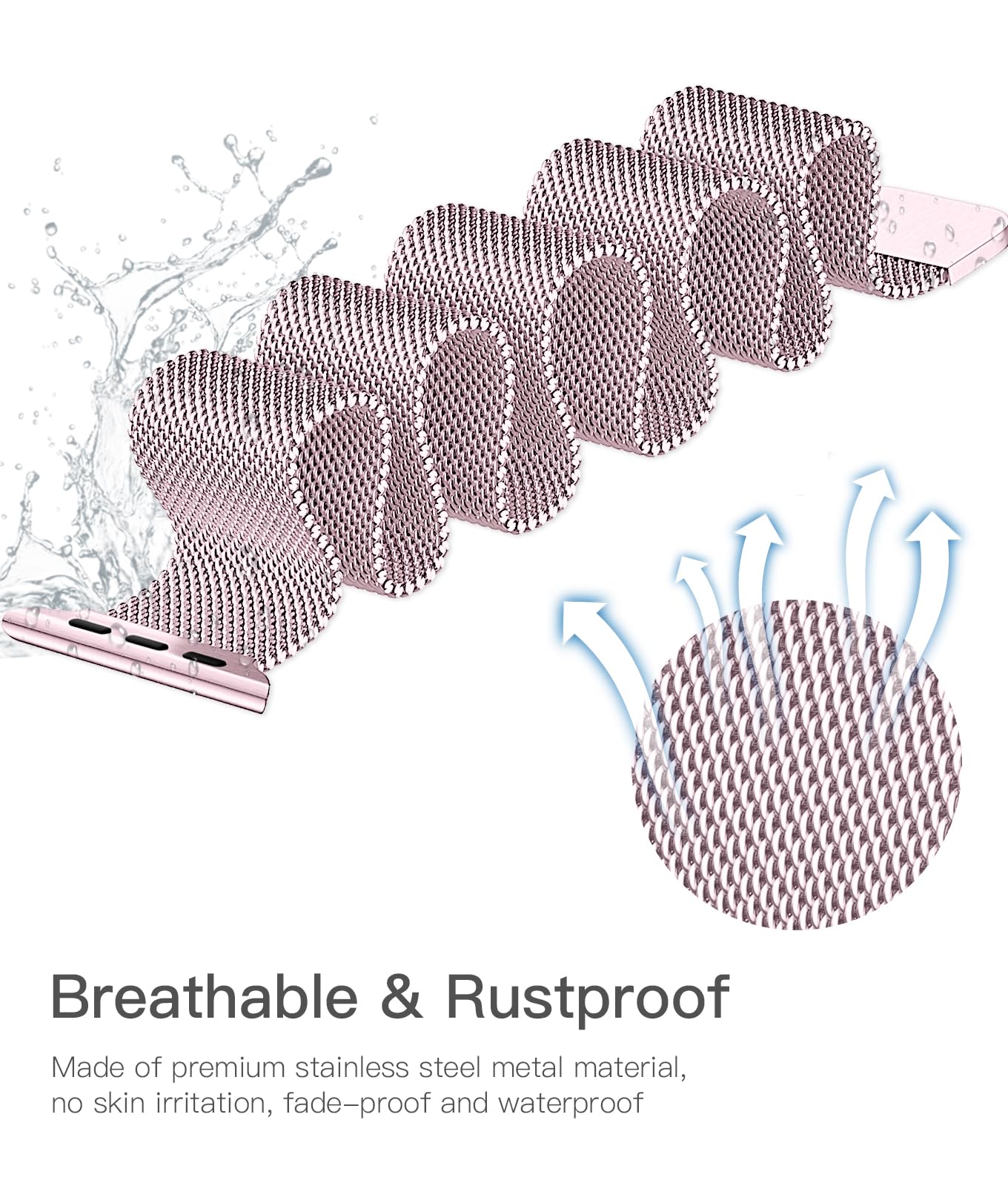 Rabini Stainless Steel Band Compatible With Apple Watch 38Mm 40Mm 41Mm 42Mm 44Mm 45Mm 46Mm 49Mm, Specially Designed For Women And Men.46Mm 42Mm(Series 10) Bands Compatible With Apple Watch Series 10 (2024);45Mm 41Mm Bands Compatible With Apple Watch Series 9 (2023), Series 8 (2022) And Series 7 (2021);49Mm Bands Fit For Apple Watch Ultra;44Mm 40Mm Bands Compatible With Iphone Watch Se 1St And 2Nd Generation, Series 6 (2020), Series 5 (2019) & Series 4 (2018);42Mm 38Mm Bands Compatible With Apple Watch Series 3 (2017) & Series 2 (2016) & Series 1 (2015).Please Choose The Correct Watch Model And Size For Yourself.Size Reference38Mm/40Mm/41Mm/42Mm(Series 10) Size Fits Wrist 5.5 -7.9 (140Mm-200Mm) In Circumference;49Mm/46Mm/45Mm/44Mm/42Mm(Series 3/2/1) Size Fits Wrist 5.9 -8.9 (150Mm-225Mm) In Circumference.Waterproof & Rustproofmade From Premium Stainless Steel Metal Material, The Sleek Iwatch Mesh Loop Band Is Sturdy,Rustproof, Fade-Proof And Easy To Maintain. It Is The Best Companion For Daily And Outdoor Sports Such As Running And Swimming,A Great Affordable Option For Your Apple Watch Accessories.About Stainless Steel Metal Iwatch Band Designthe Apple Watch Sport Loop Is Designed With Magnetic Adjustable Clasp That Makes The Smartwatch Band Easier To Put On And Take Off. And The Magnets Hold The Band Snugly On Your Wrist, Preventing Your Apple Watch From Falling Off, Safer & Stronger.Our Apple Watch Metal Band Feature An Advanced Mesh Weave Construction, So The Water In Your Wrist Dries Easily, Making You Feel More Comfortable.Wear It Your Waydecorate With Rabini Replacement Bands To Identify Your Apple Watch And Show Your Personality And Luxurious.A Ideal Gift For Your Love, Your Mate, Family, Friends During Thanksgiving, Christmas, Birthday, New Year.