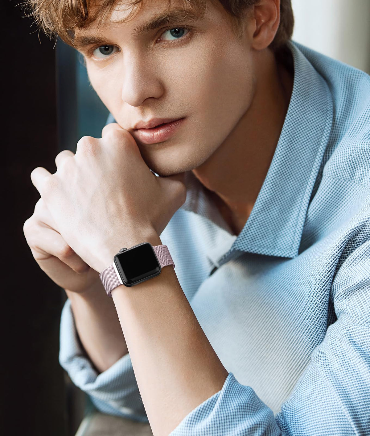 Rabini Stainless Steel Band Compatible With Apple Watch 38Mm 40Mm 41Mm 42Mm 44Mm 45Mm 46Mm 49Mm, Specially Designed For Women And Men.46Mm 42Mm(Series 10) Bands Compatible With Apple Watch Series 10 (2024);45Mm 41Mm Bands Compatible With Apple Watch Series 9 (2023), Series 8 (2022) And Series 7 (2021);49Mm Bands Fit For Apple Watch Ultra;44Mm 40Mm Bands Compatible With Iphone Watch Se 1St And 2Nd Generation, Series 6 (2020), Series 5 (2019) & Series 4 (2018);42Mm 38Mm Bands Compatible With Apple Watch Series 3 (2017) & Series 2 (2016) & Series 1 (2015).Please Choose The Correct Watch Model And Size For Yourself.Size Reference38Mm/40Mm/41Mm/42Mm(Series 10) Size Fits Wrist 5.5 -7.9 (140Mm-200Mm) In Circumference;49Mm/46Mm/45Mm/44Mm/42Mm(Series 3/2/1) Size Fits Wrist 5.9 -8.9 (150Mm-225Mm) In Circumference.Waterproof & Rustproofmade From Premium Stainless Steel Metal Material, The Sleek Iwatch Mesh Loop Band Is Sturdy,Rustproof, Fade-Proof And Easy To Maintain. It Is The Best Companion For Daily And Outdoor Sports Such As Running And Swimming,A Great Affordable Option For Your Apple Watch Accessories.About Stainless Steel Metal Iwatch Band Designthe Apple Watch Sport Loop Is Designed With Magnetic Adjustable Clasp That Makes The Smartwatch Band Easier To Put On And Take Off. And The Magnets Hold The Band Snugly On Your Wrist, Preventing Your Apple Watch From Falling Off, Safer & Stronger.Our Apple Watch Metal Band Feature An Advanced Mesh Weave Construction, So The Water In Your Wrist Dries Easily, Making You Feel More Comfortable.Wear It Your Waydecorate With Rabini Replacement Bands To Identify Your Apple Watch And Show Your Personality And Luxurious.A Ideal Gift For Your Love, Your Mate, Family, Friends During Thanksgiving, Christmas, Birthday, New Year.