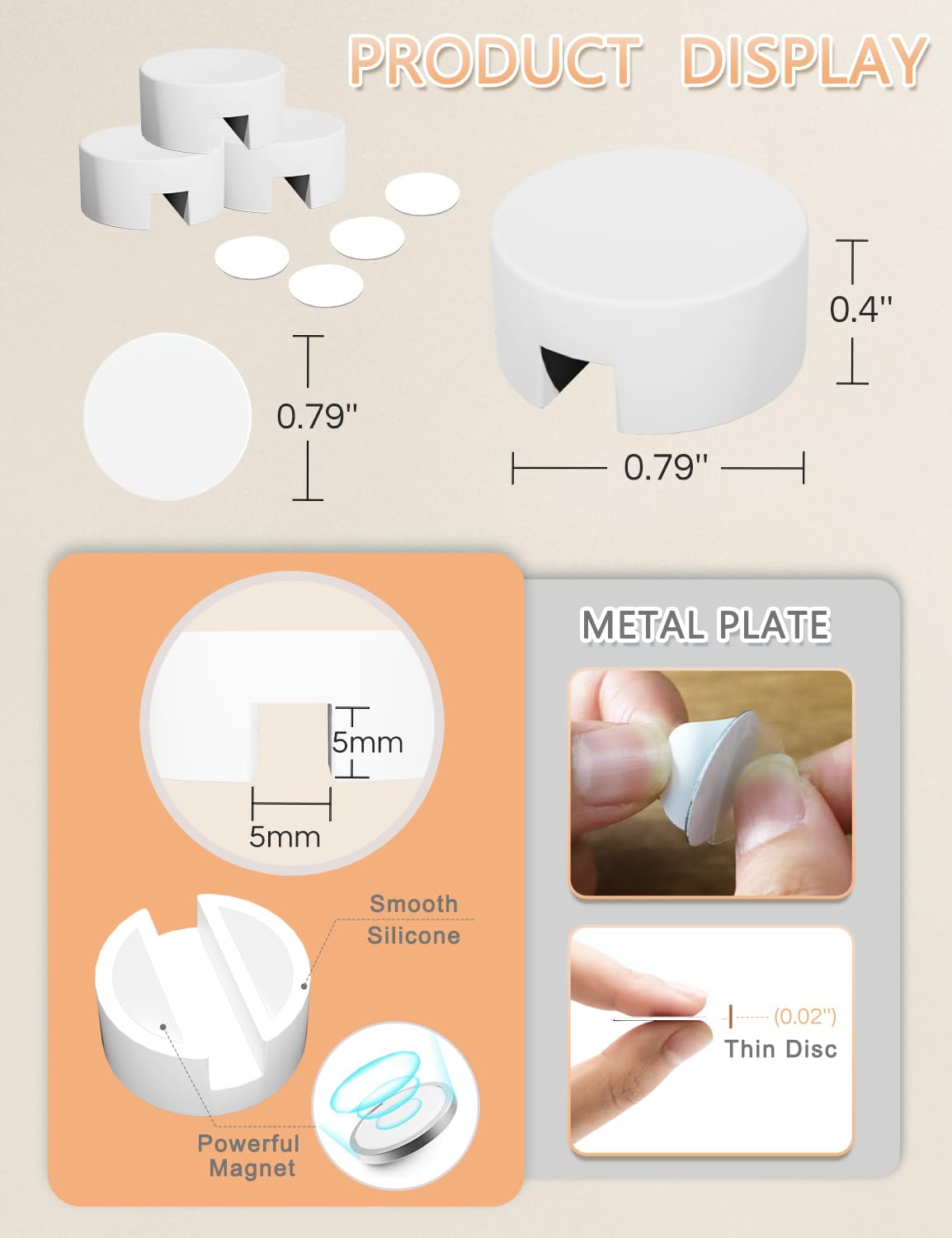 Q: What types of cables can the magnetic cable clips hold?A: The Xuuza Magnetic Cable Holder is designed with a 0.2'' (5mm) slot diameter, making it suitable for a variety of everyday cables, including phone chargers, USB cables, and headphones. Its versatile design allows it to accommodate most standard cable sizes.
