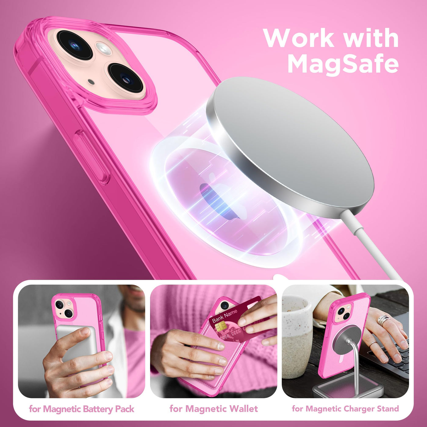 Q: Is the Magnetic for iPhone 13 Case compatible with MagSafe accessories?A: Yes, this case features a built-in magnetic ring with 48 strong N52 magnets, ensuring compatibility with MagSafe accessories, including chargers, wallets, and more.