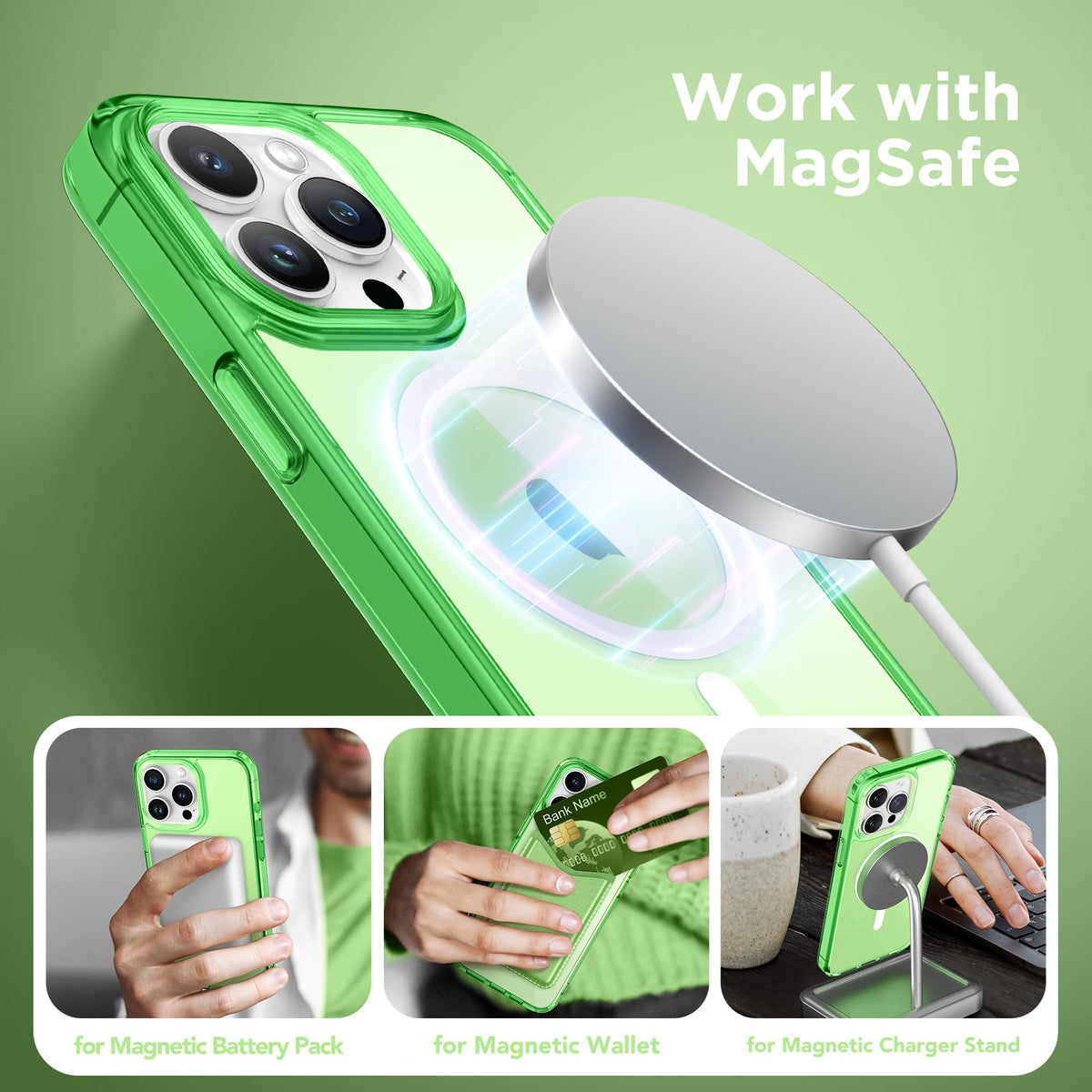 Q: Is the Magnetic for iPhone 14 Pro Max Case compatible with MagSafe accessories?A: Yes, this case features a built-in magnetic ring with 48 strong N52 magnets, providing 4X stronger magnetic strength. It aligns perfectly with MagSafe and other QI-certified chargers, ensuring safe and fast wireless charging, and securely connects to all MagSafe accessories.