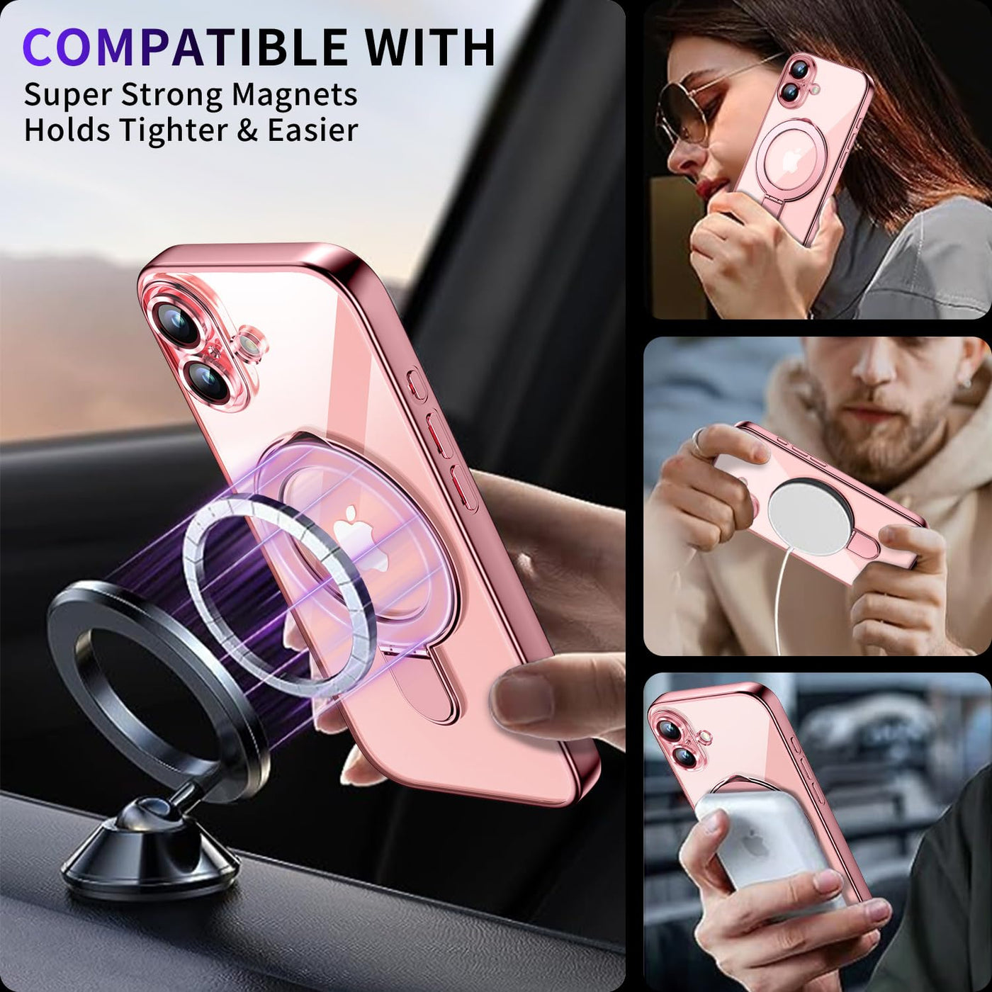 It'S Only Designed Specifically For Iphone 16 6.1 Inch, With Precise Cutouts For Easy Access To All Buttons, Speakers, Cameras And Charger Slot. The Buttom Upgrade Protection Of Built-In Dustproof Net.&Nbsp;The Back Is Made Of High-Quality Tpu Material, Which Never Yellowing. This Case Combined The Strong Magnetic Technology With A Foldable Stand Which Compatible With All Magsafe Accessories. It Simply Morphs Into A Robust Phone Holder And Folds Back Into An Invisible State.It Can Be Quite Useful When Working, Cooking, Or Watching A Tv Show. Iphone 16 Case Comes With Full Camera Protection, No Need To Install It Yourself. It Can Protect The Camera From Drops, Scratches, And Bumps. Covers The Lens While Avoiding Dust Accumulation, Keeping The Camera'S Original Shooting Impact.&Nbsp;The Edge, Camera, And Magnetic Ring Are All Electroplated To Keep A Bright, Metallic Appearance That Never Fades Or Peels. The Electroplated Part Can Provide Original Phone Feel And Comfortable Grip. The Case Is Light And Soft, Not Adding Too Much Weight To The Phone. It Can Easily Slide Into The Pocket Without Being Bulky, And The Phone Will Not Be Damaged After Disassembly.