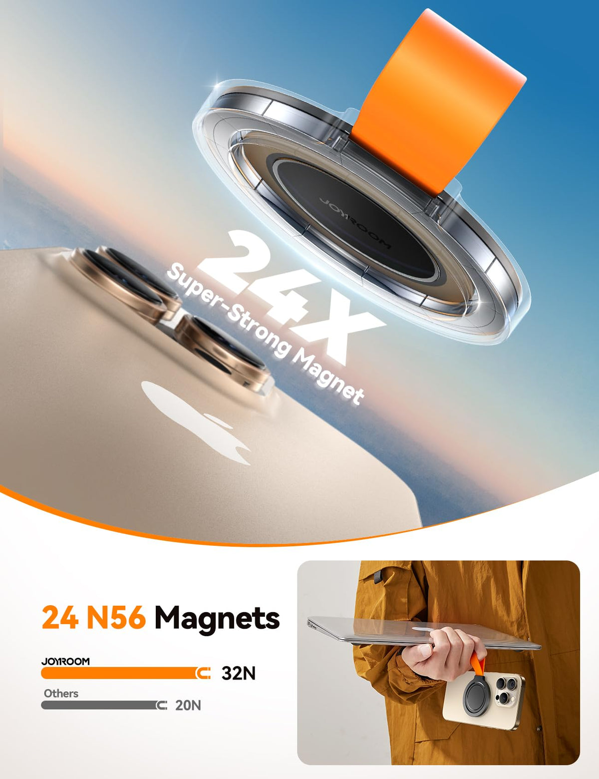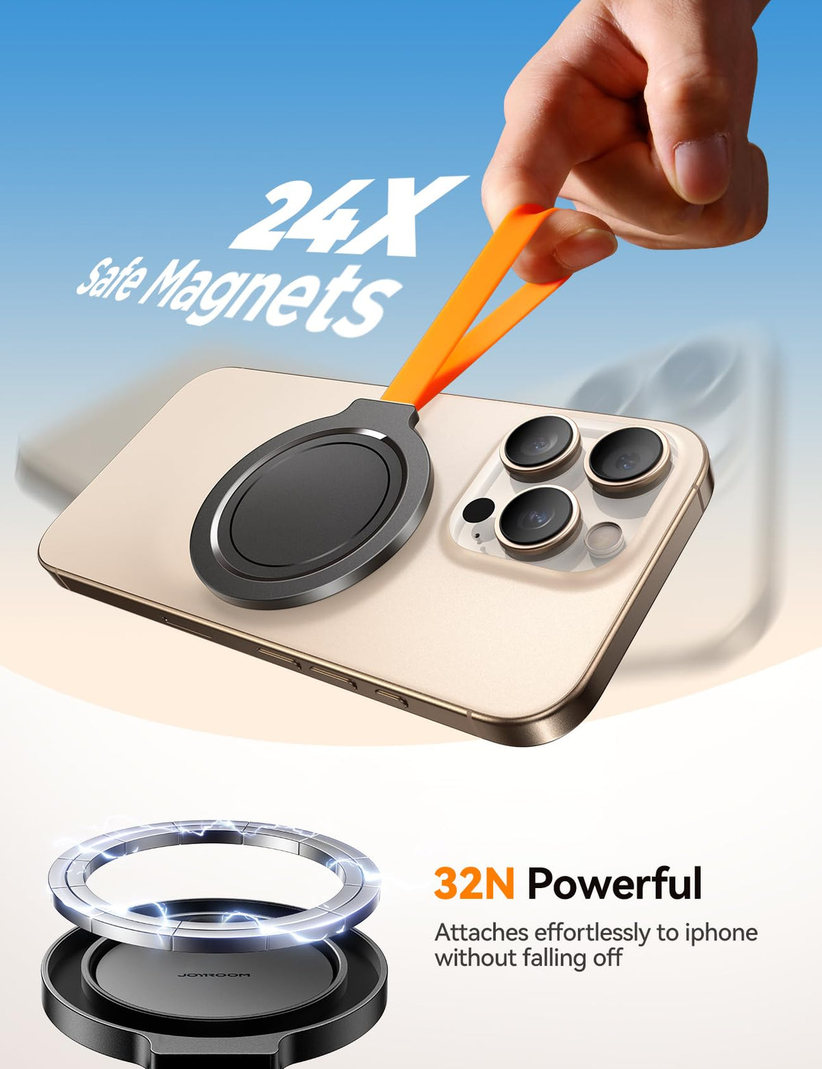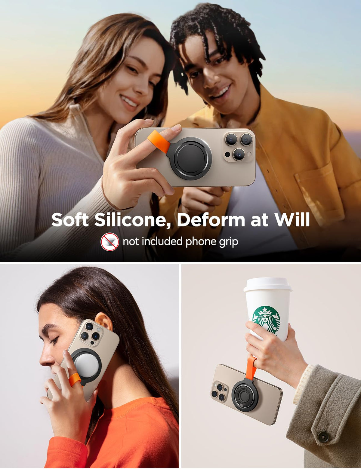 Joyroom Magnetic Base Compatible With Popsocket Phone Grips And Iphone Magsafe Cases, Removable Phone Holder With Silicone Handle For Iphone 16 15 14 13 12, Kindle & Android, Orange