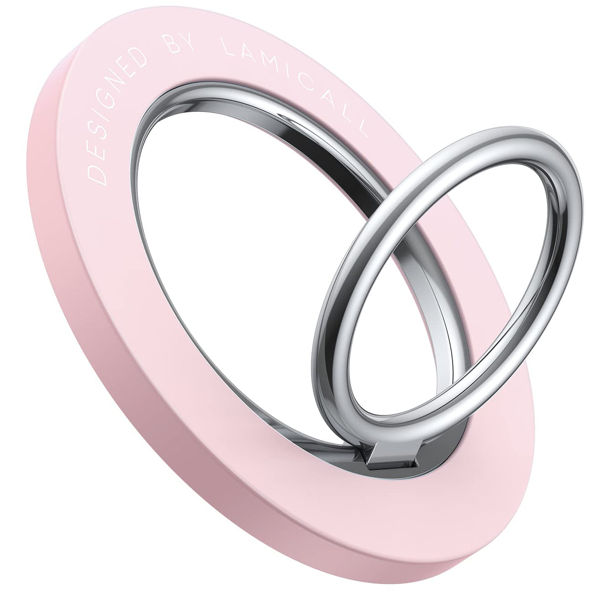 Magnetic Phone Ring Holder for Mag Safe Lamicall Magnetic Finger Phone Ring Stand Holder, Magnet Ring Grip, Compatible with iPhone 14 Plus 13 12, Pro, Pro Max, Mini, Sakura Pink