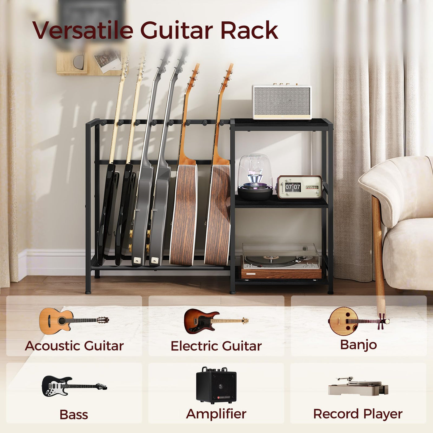 Mahancris Guitar Stand, Guitar Holder For 5-6 String Instruments, Suitable For Acoustic Guitar, Bass, Guitar Rack With Side Shel