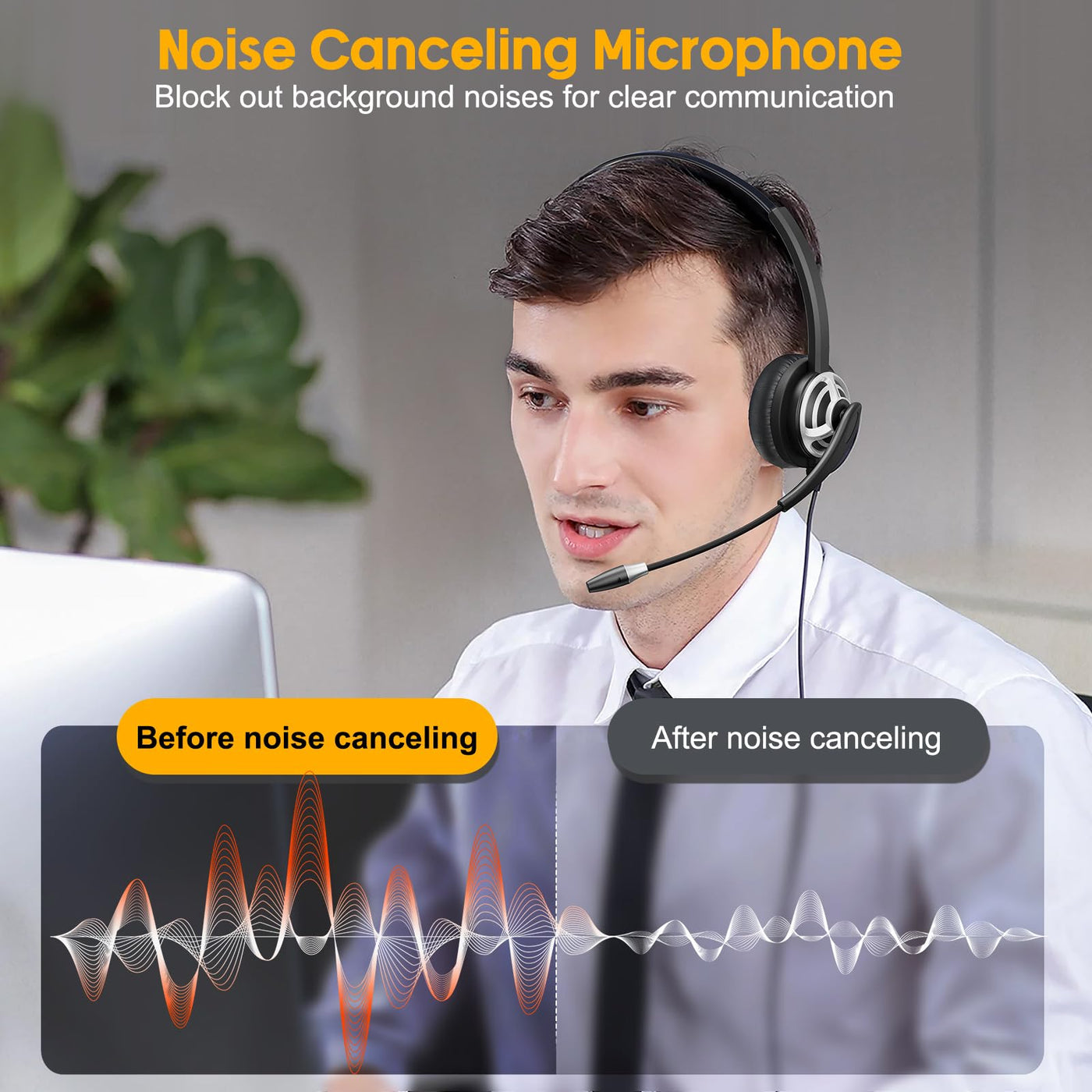 Mairdi Usb Headset With Microphone For Pc, Computer Headset With Mic Noise Canceling For Laptop Teams Zoom Office Call Center Vo