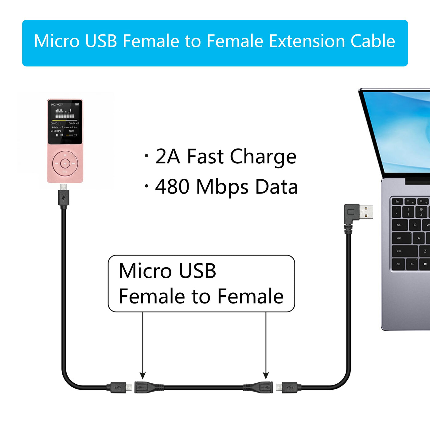 Maixbomr Short Micro Usb Extension Cable 9Inch, Micro Usb Female To Female Charging And Data Sync Cable For Micro Usb Device, Ph