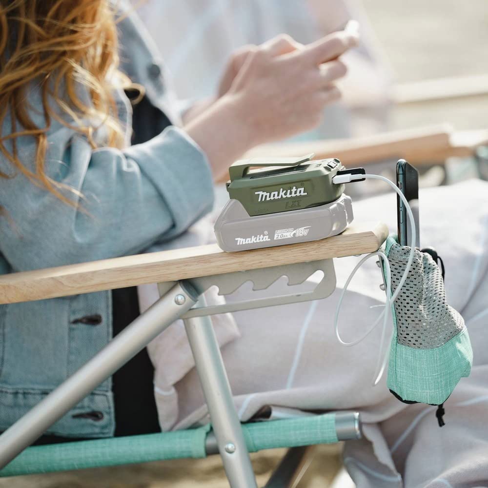 Get Outside With Outdoor Adventure, A New Series Of Cordless Products That Operate Within The Lxt System. Outdoor Adventure Products Feature Advanced Technology, Delivering Maximum Performance And Efficiency For The Outdoors. Makita Offers Hundreds Of Products Within The 18V Lxt System So You Can Create Your Own Adventure.Have The Power To Go Anywhere With The Outdoor Adventure 18V Lxt Cordless Power Source (Adadp05). It Allows You To Turn Your Makita 18V Lxt Into A Charging Port. Mount The Adadp05 Onto Your Makita 18V Battery And You Get Two Usb Charging Ports. Each Usb Port Delivers 2.1A Output. The Built-In Clip Attaches To A Belt Or Holster, With Rubber Covers For Improved Durability.Its Part Of Makitas Expanding 18V Lithium-Ion System, The Worlds Largest Cordless Tool System Powered By 18V Lithium-Ion Slide-Style Batteries. Makita 18V Lxt Lithium-Ion Batteries Have The Fastest Charge Times In Their Categories, So They Spend More Time Working And Less Time Sitting On The Charger.
