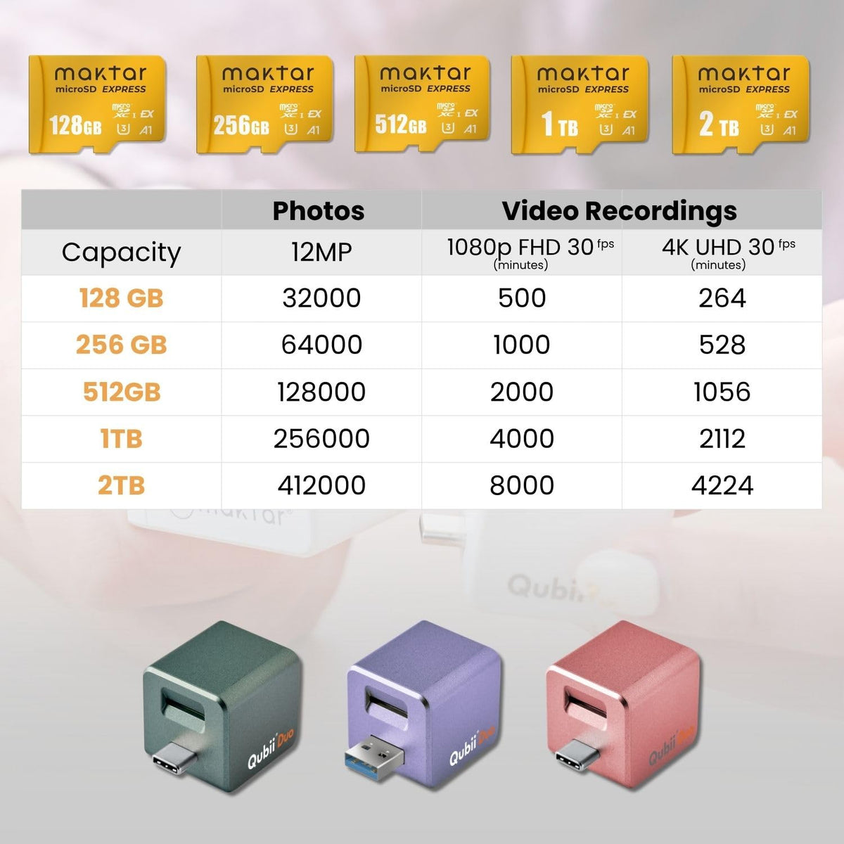 Maktar Mfi-Certified Qubii Duo Usb-C Auto Photo Storage & Iphone Backup While Charging Ends Icloud Fees. Free App Apple Android