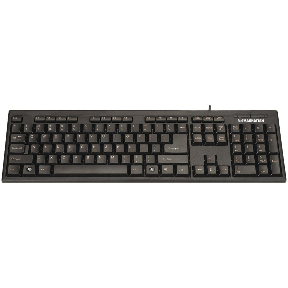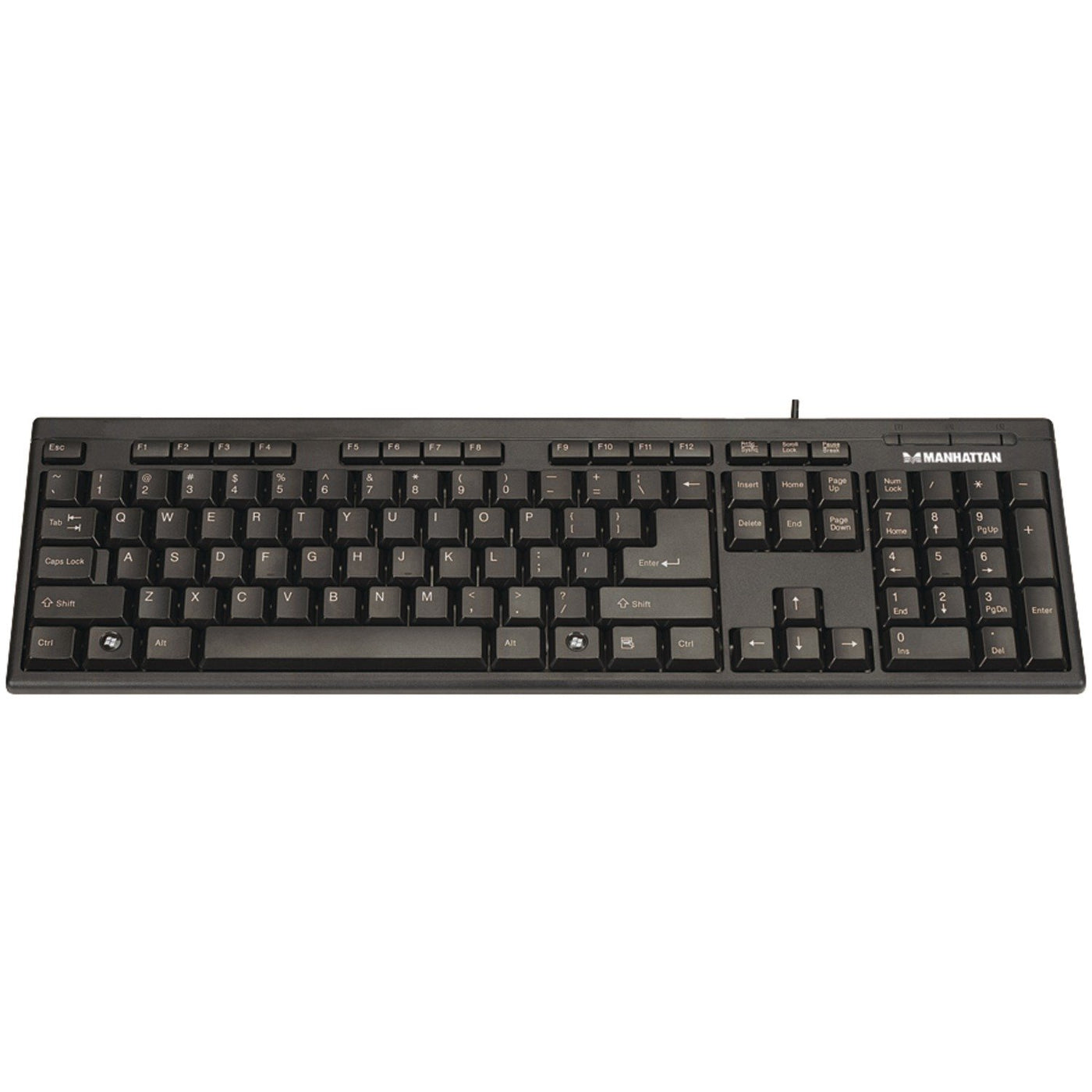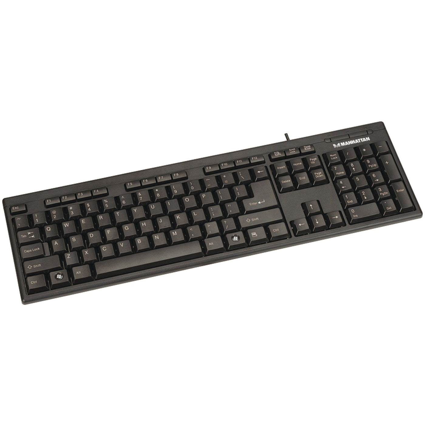 Q: What are the key features of the MANHATTAN Enhanced Keyboard?A: The MANHATTAN Enhanced Keyboard features an ergonomic key arrangement, spill-resistant low-force key switches for quiet and tactile response, and LED indicators for Number, Scroll, and Caps Lock. These features make it ideal for both home and office use.
