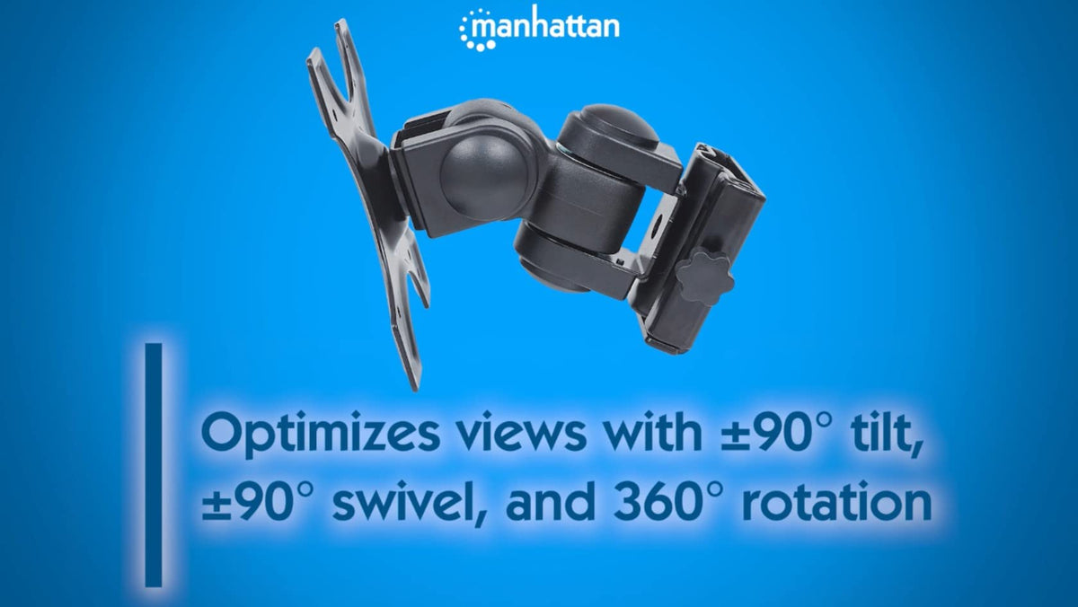 Better Utilize Work Space, Improve Ergonomics And Share Views. The Manhattan Lcd Wall Mount Provides A Secure And Elevated Position For A Single Flat-Panel Display To Help Keep Valuable Desk And Work Space Free And Uncluttered. Its Adjustable Tilt, Rotate, Side-To-Side Settings Enable A Comfortable And Productive Viewing Position. Durable Die-Cast Aluminum Construction And Two-Piece Bracket Provide A Quick, Easy And Secure Mount To Most Vertical Surfaces. Vesa Compliant And Ready To Install With Included Hardware.