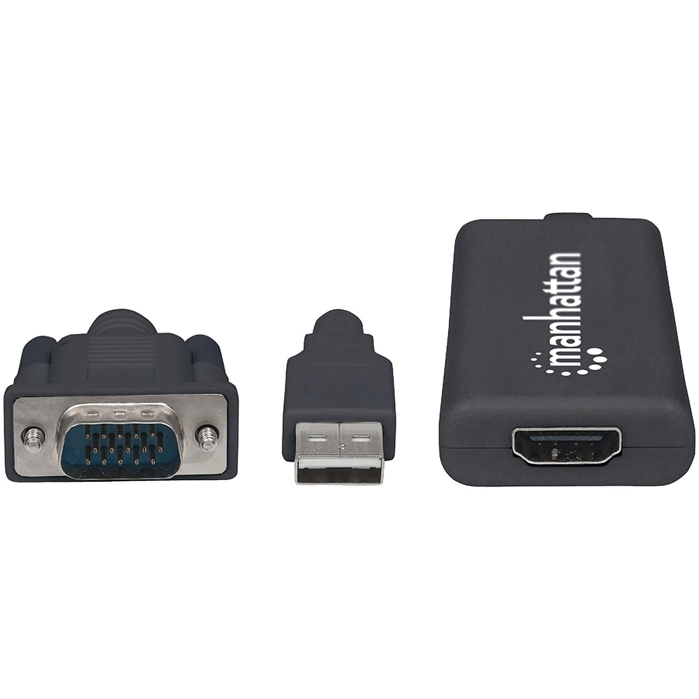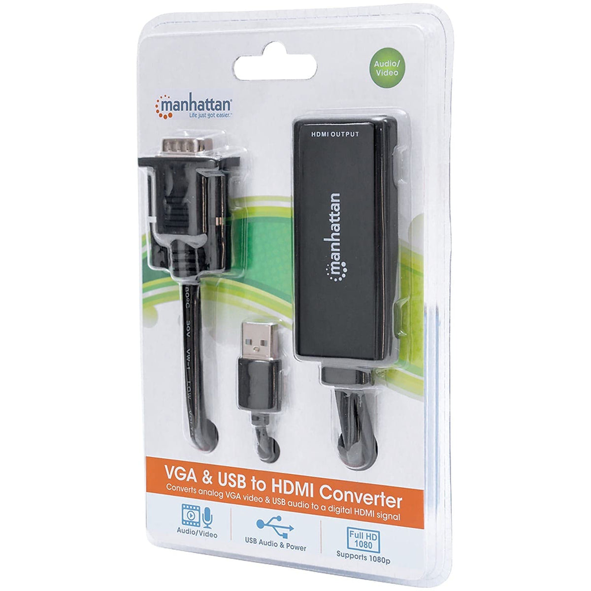 Q: How do I set up the MANHATTAN VGA & USB to HDMI Converter?A: Setting up the MANHATTAN VGA & USB to HDMI Converter is straightforward. Simply connect the VGA output from your computer to the converter, and then connect the HDMI cable from the converter to your display device. The USB connection provides necessary power, ensuring a plug-and-play experience without needing additional drivers.