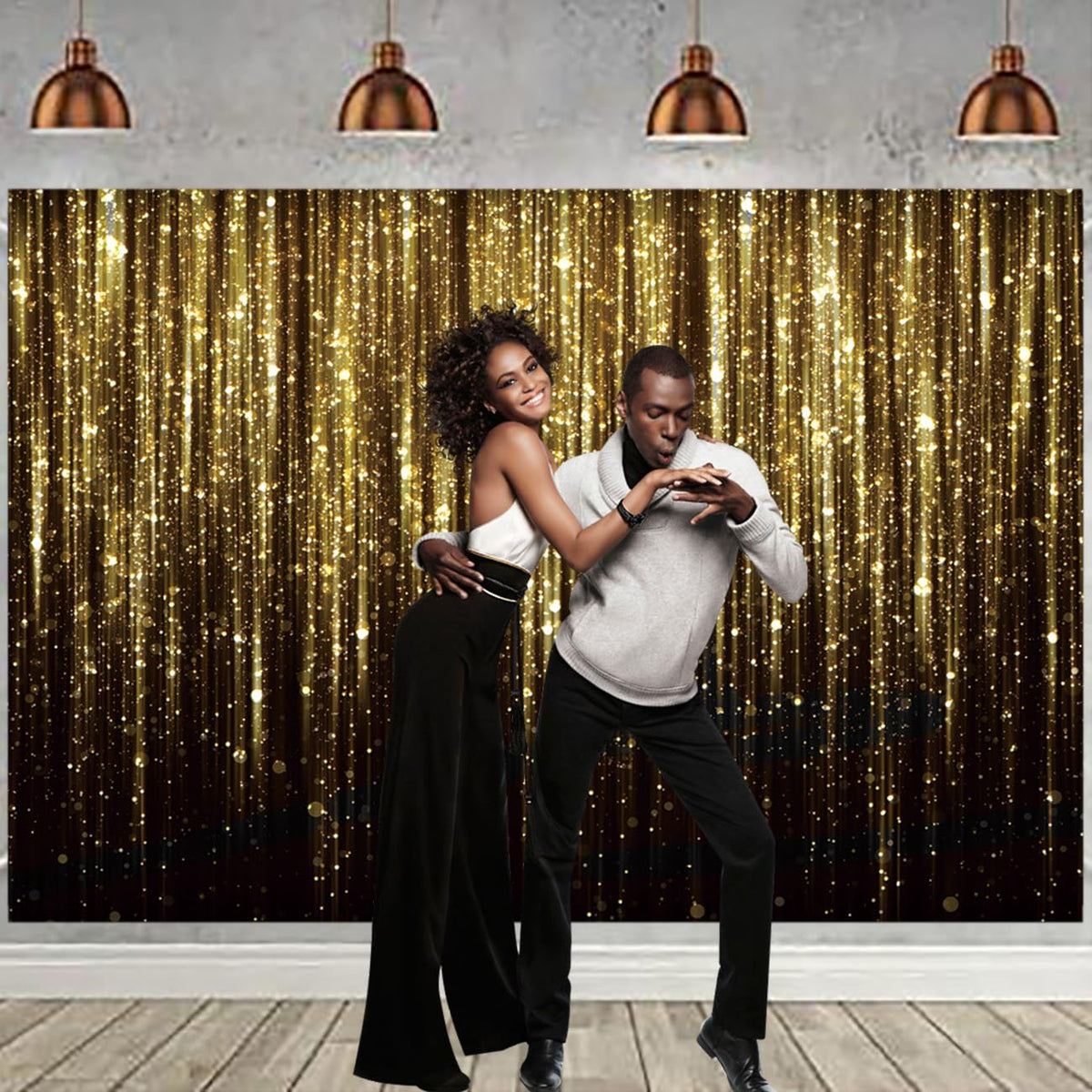 Maqtt 10X8Ft Golden Tassels Flash Merry Christmas And New Year'S Party Gold Tassels Decorate Birthday Party Photo