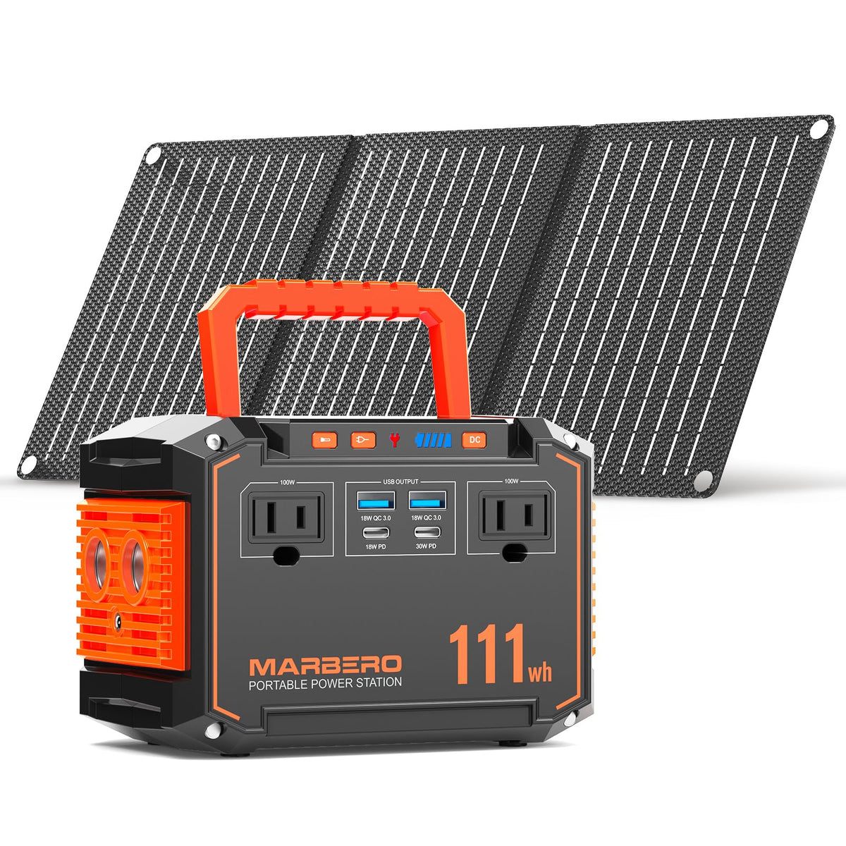 Marbero 150W Peak Solar Generator With 30W Solar Panel 111Wh Camping Portable Power Station 110V Power Bank With Ac Outlet(2*Usb