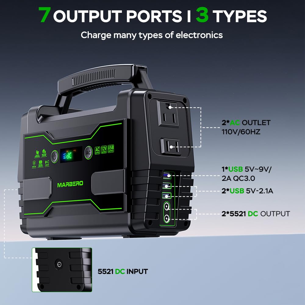 Marbero Portable Power Station 155Wh Camping Solar Generator 100W With Ac Dc And Usb Outputs Led Fast Charge For Outdoor Adventu