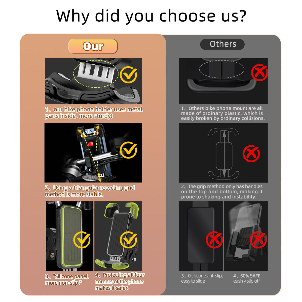 Marspeeder Bike Motorcycle Phone Mount, ?Super Stable Metal? Bike Motorcycle Phone Holder With Security Lock, Bicycle Phone Moun