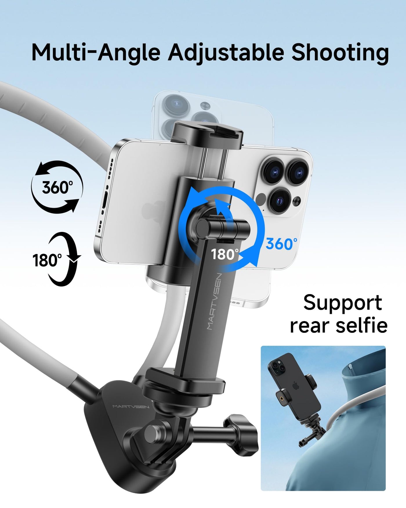 Martvsen Neck Phone Holder - Pov/Vlog Holder, Hands Free Selfie Mount Chest Video Filming For Iphone 16-13 Android Phones, Gopro