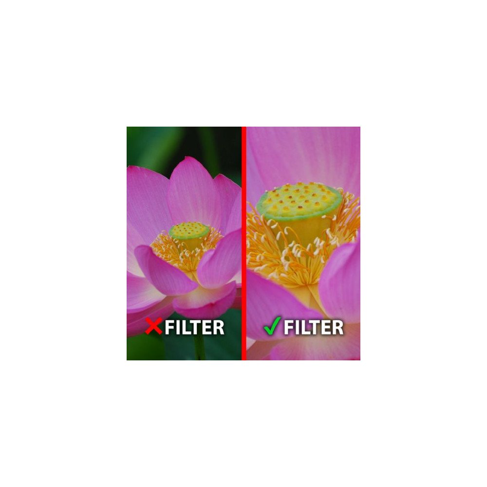 Q: What makes the Marumi Achromat Lens different from standard macro filters?A: Unlike standard macro filters, the Marumi Achromat Lens features ultra low reflection coating and is mounted in specially designed rings, which enhance image clarity and reduce glare, providing superior performance for macro photography.
