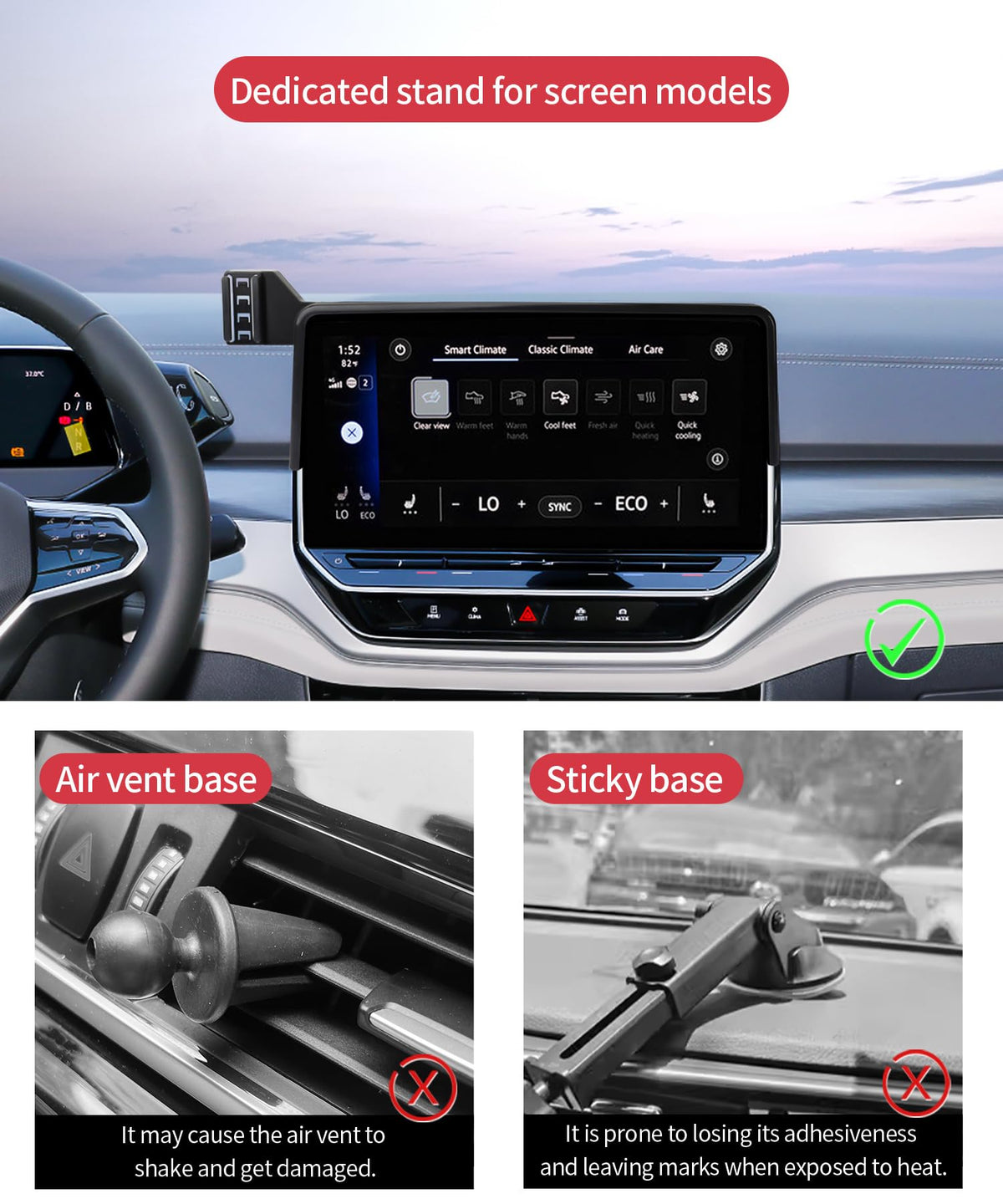 Specially Designed For 2021-2024 Volkswagen Id.4 Accessories. This Phone Holder Is Installed On A 12 Inch Screen Only And Does Not Affect Screen Operation. Note: ?One - Touch Release?The Masergogo Car Phone Holder Is Equipped With A Quick - Release Button And Adjustable Clamping Arms. It Can Lock Or Release Your Phone In Just 0.3 Seconds. Why Choose Our Car Phone Holder? Specially Designed, Compatible With Vehicle Models. Unified Style, And Reliable Quality. Does Not Block The Air Vent. No Need To Look Down At Your Phone. One-Handed Operation. Triangular Fixation,Automatic Locking. Car Phone Holder Can 360Rotate. About Customer Service: Our Stands Firmly Behind Its Products And Customer Service. We Can Provide 100% Money Back Replacement Guaranty. Any Issues With Your Order, Please Contact Us, We Will Respond Within 24 Hours. Place Your Order With Gogo Store Today!