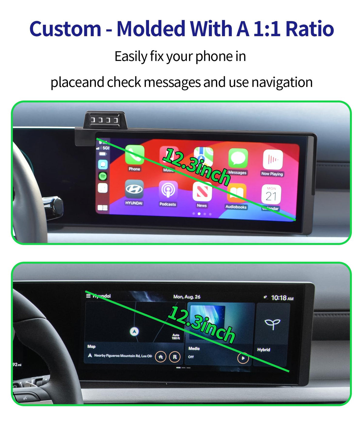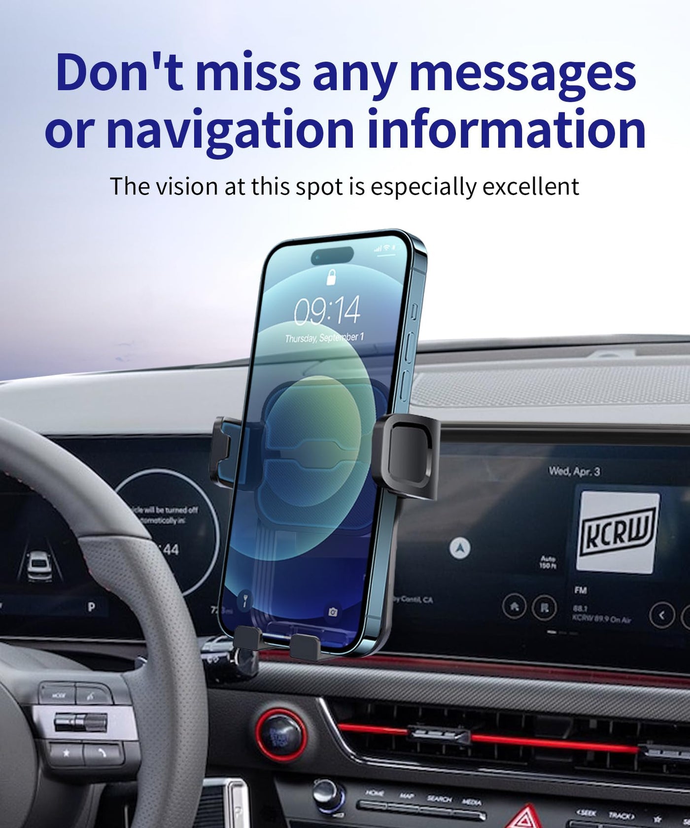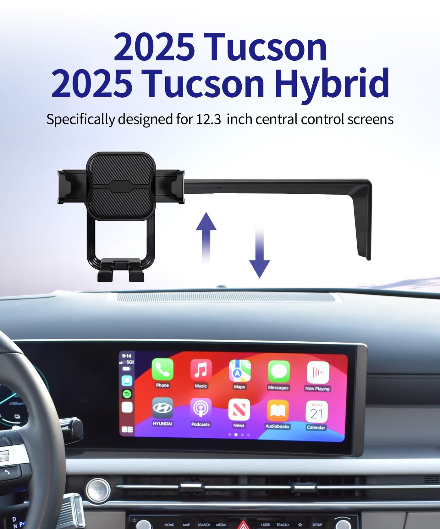 Specially Designed For 2025 Hyundai Tucson / Tucson Hybrid Accessories. This Phone Holder Is Installed On A 12.3 Inch Screen Only And Does Not Affect Screen Operation. Note: ?One - Touch Release?The Masergogo Car Phone Holder Is Equipped With A Quick - Release Button And Adjustable Clamping Arms. It Can Lock Or Release Your Phone In Just 0.3 Seconds. Why Choose Our Car Phone Holder? Specially Designed, Compatible With Vehicle Models. Unified Style, And Reliable Quality. Does Not Block The Air Vent. No Need To Look Down At Your Phone. One-Handed Operation. Triangular Fixation,Automatic Locking. Car Phone Holder Can 360Rotate. About Customer Service: Our Stands Firmly Behind Its Products And Customer Service. We Can Provide 100% Money Back Replacement Guaranty. Any Issues With Your Order, Please Contact Us, We Will Respond Within 24 Hours. Place Your Order With Gogo Store Today!