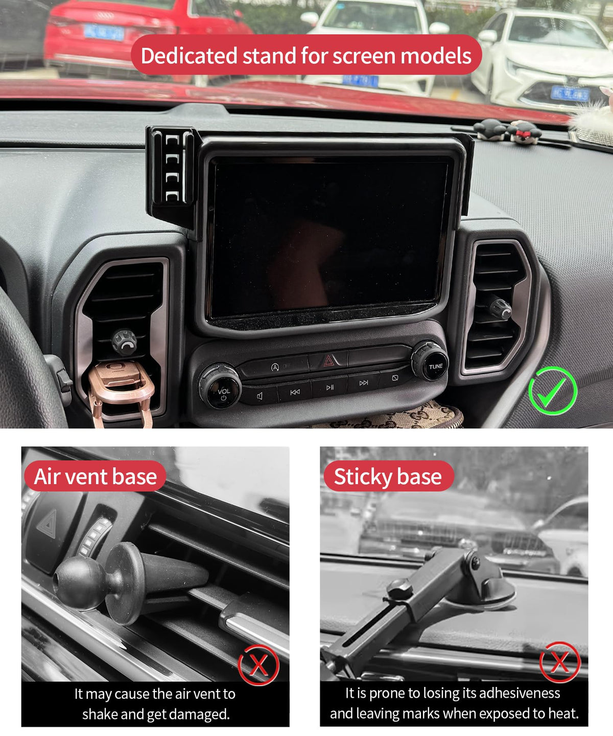 Specially Designed For 2021-2024 Ford Bronco Sport Accessories. This Phone Holder Is Installed On A 8 Inch Screen Only And Does Not Affect Screen Operation. Note: ?Car Mount For Magsafe?Compatible With Iphone 16/15/14/13/12 Series Magsafe.(Attached Metal Ring, Paste A Metal Ring To Use Other Phones.) Why Choose Our Car Phone Holder? Specially Designed, Compatible With Vehicle Models. Unified Style, And Reliable Quality. Does Not Block The Air Vent. No Need To Look Down At Your Phone. One-Handed Operation. Triangular Fixation,Automatic Locking. Car Phone Holder Can 360Rotate. About Customer Service: Our Stands Firmly Behind Its Products And Customer Service. We Can Provide 100% Money Back Replacement Guaranty. Any Issues With Your Order, Please Contact Us, We Will Respond Within 24 Hours. Place Your Order With Gogo Store Today!