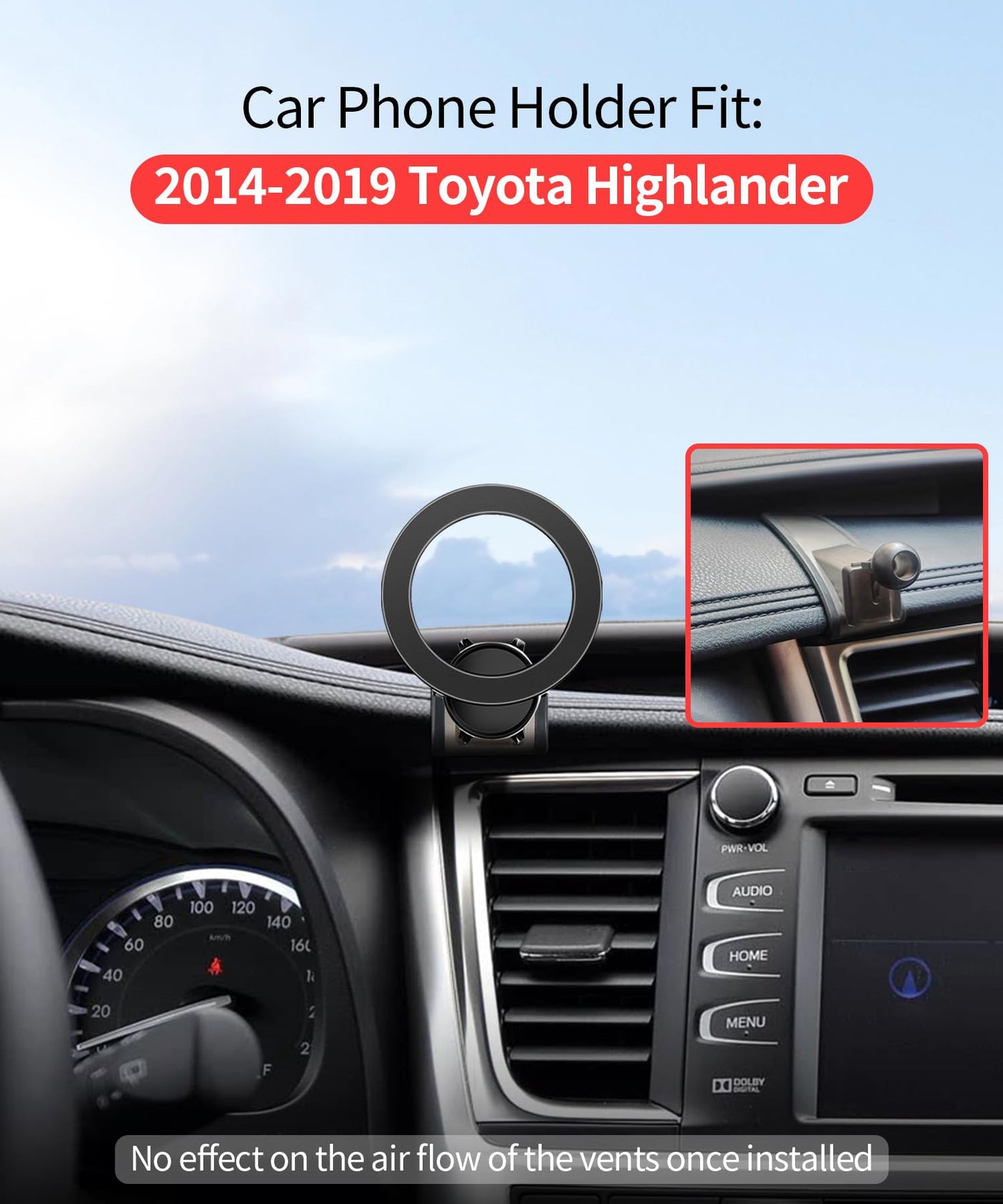 Specially Designed For 2014 2015 2016 2017 2018 2019 Toyota Highlander. Note: ?Car Mount For Magsafe?Compatible With Iphone 16/15/14/13/12 Series Magsafe.(Attached Metal Ring, Paste A Metal Ring To Use Other Phones.) Why Choose Our Car Phone Holder? Specially Designed, Compatible With Vehicle Models. Unified Style, And Reliable Quality. Does Not Block The Air Vent. No Need To Look Down At Your Phone. One-Handed Operation. Triangular Fixation,Automatic Locking. Car Phone Holder Can 360Rotate. About Customer Service: Our Stands Firmly Behind Its Products And Customer Service. We Can Provide 100% Money Back Replacement Guaranty. Any Issues With Your Order, Please Contact Us, We Will Respond Within 24 Hours. Place Your Order With Maserweller Store Today!