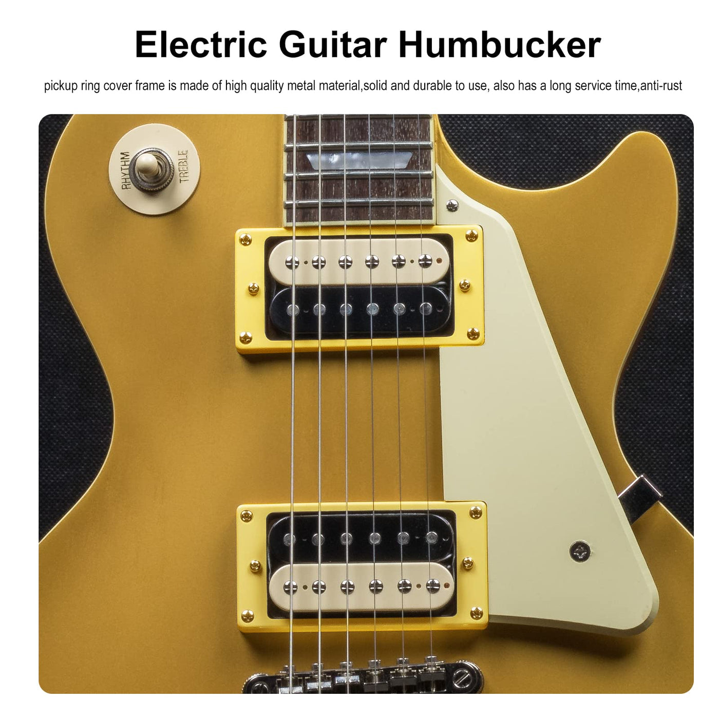 Maxcheer 2Pcs Metal Iron Flat Humbucker Pickup Ring For Electric Guitar Replacement (Glod)