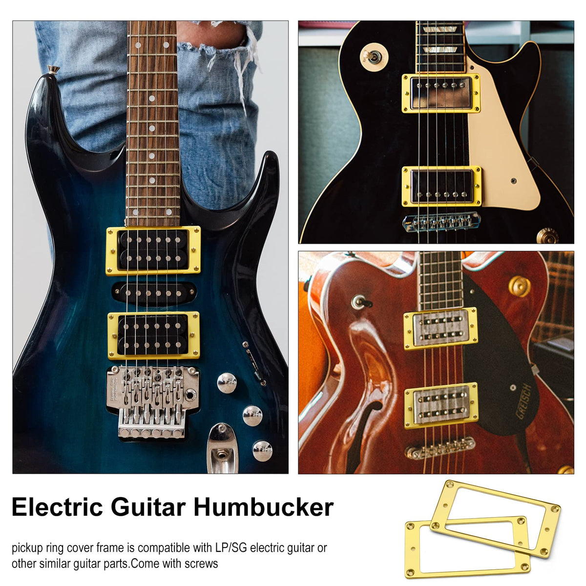 Features: Enhance The Appearance Of Any Electric Instruments Two Pieces Set Great For Neckbridge Humbucker Pairs Really Dresses Up Humbucker Mounts By Covering Hole Edges Metal Construction, Stable And Sturdy, Not Easy To Deform Great For New Builds And Repairreplacement Pickup Frame Fit For Electric Guitar Or Other Similar Guitar Parts Wonderful Diy Parts For Guitarists Or Luthiers Specifications: Material: Metal Color: Glod Outer Frame Dimension(Lxw):Approx92X46Mm36 X 18In Inner Frame Dimension(Lxw):Approx70X39Mm27 X 15In Package Includes: 2 Pcs Pickup Mounting Rings 8 Pcs Screws(The Same Color As The Rings)