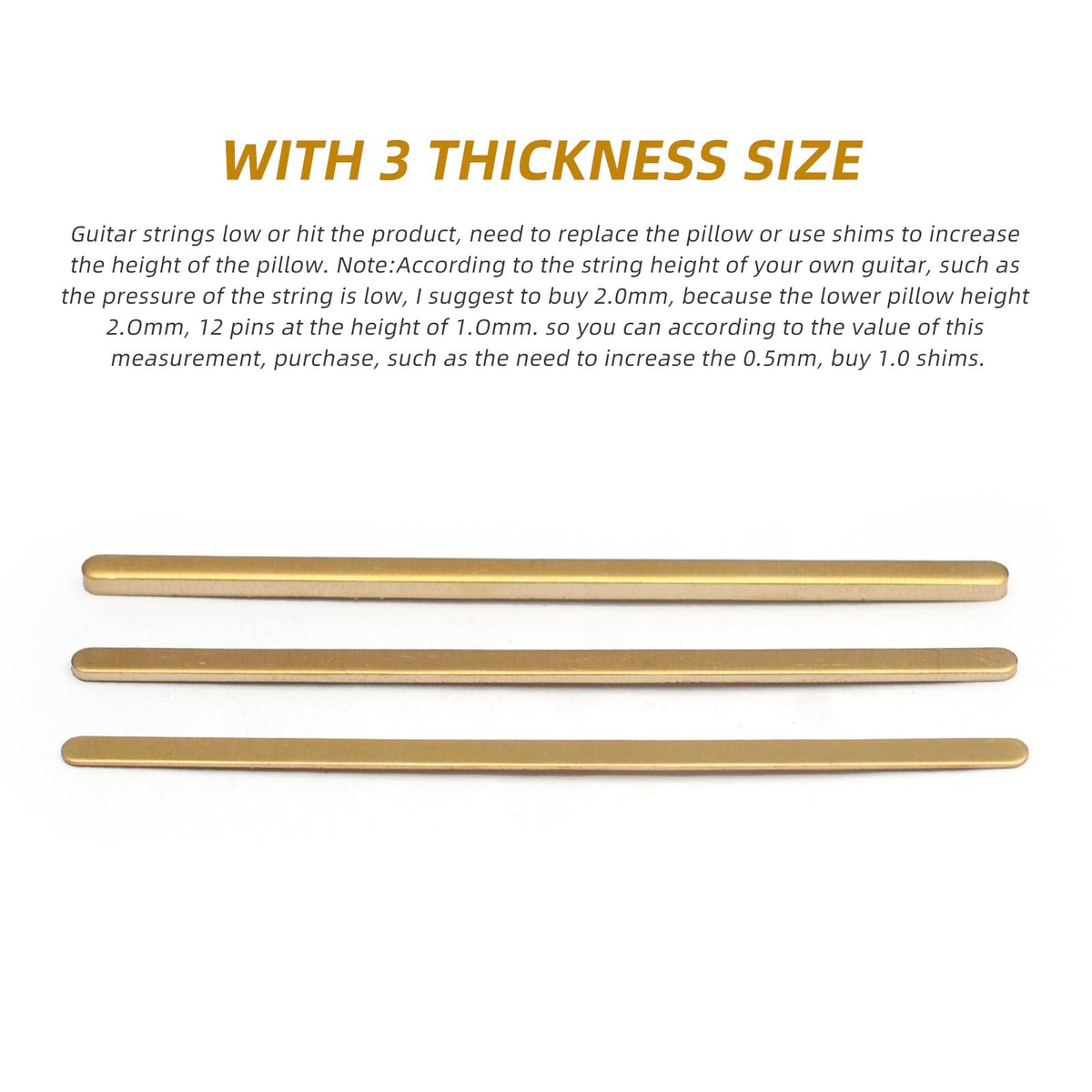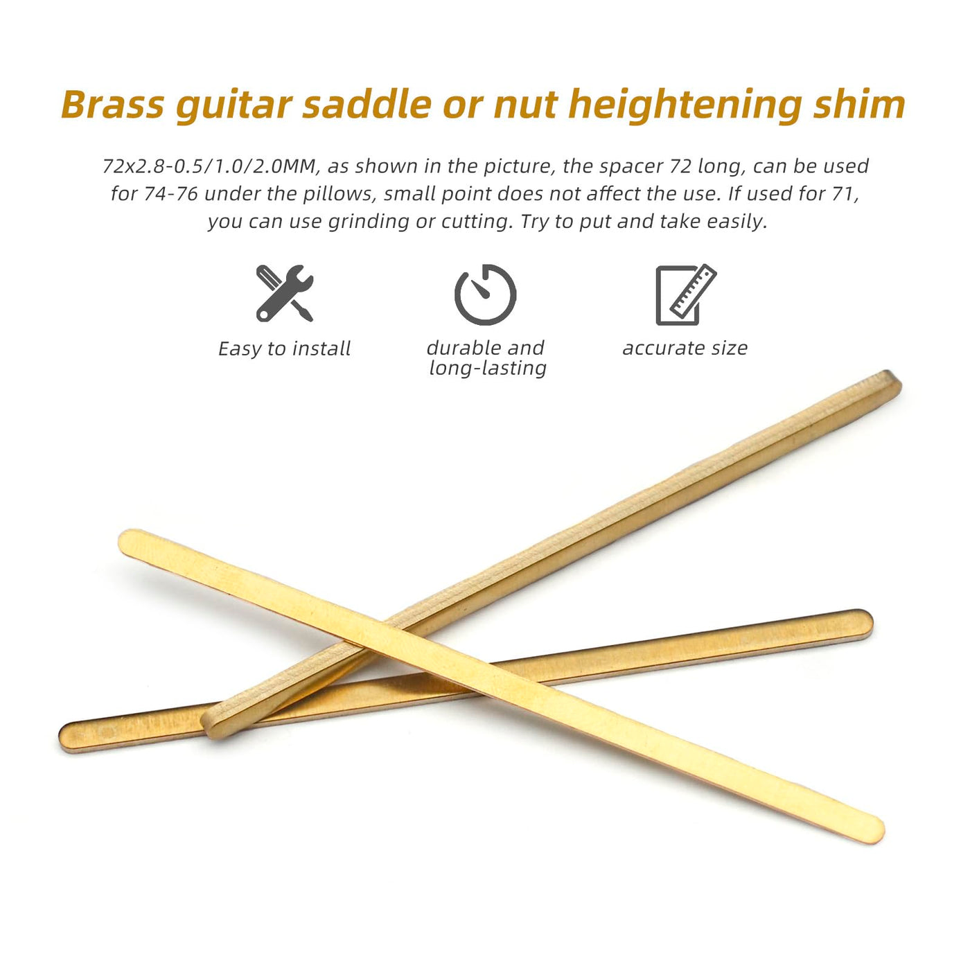 Maxcheer 3Pcs Saddle/Nut Height Adjusting Shim Brass Durable Heightening Gasket 72X2.8Mm Three Thicknesses Of 0.5/1.0/2.0Mm Luth
