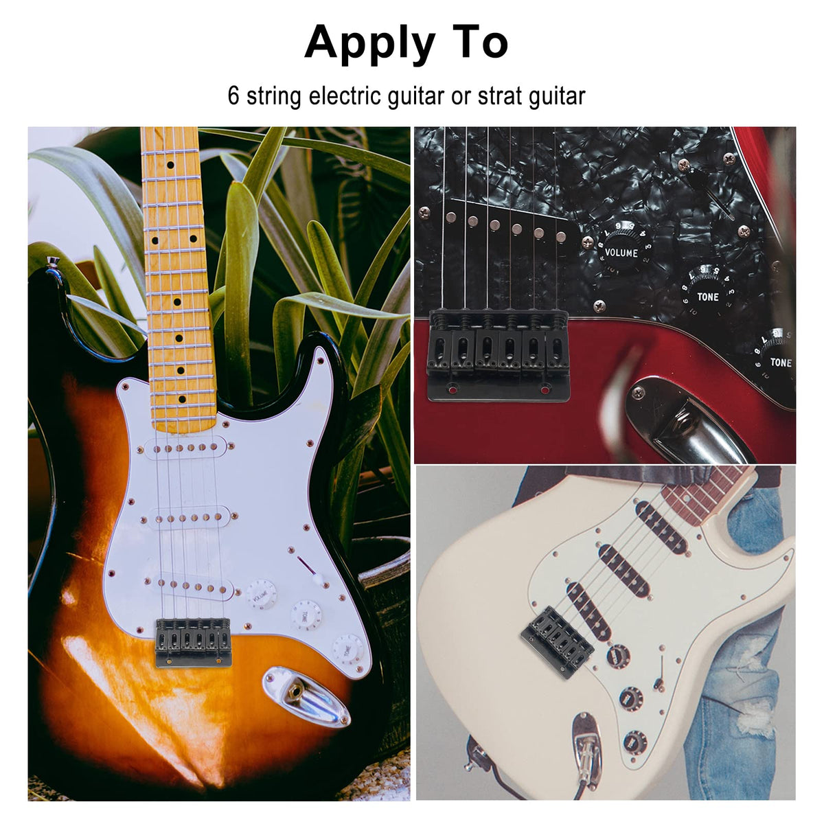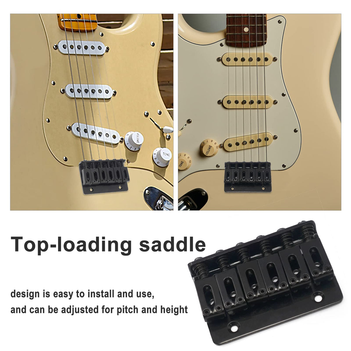 Specification: 100% Brand New, Never Used Item'S Color Might Be Different From The Picture Because Of The Aberration. For 6 String Electric Guitar Or Strat Guitar Material:Metal Color:Black Top-Loading Design For An Easy Install &Amp; Easy Access. Features Fully Adjustable Saddles(For Intonation And Height Level) Size:65Mm X 40Mm*13Mm String Space:10.5Mm Package Included: 1 * Bridge 1 * Wrench 5 * Screws