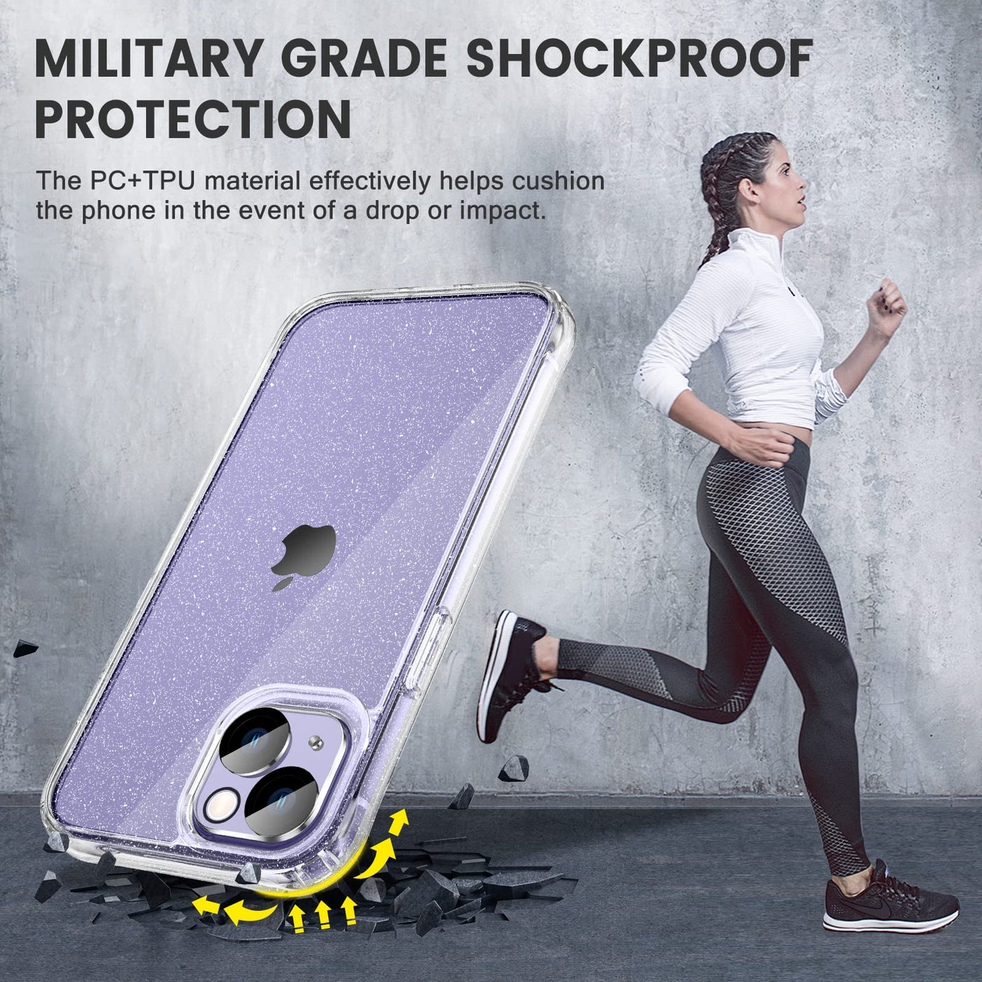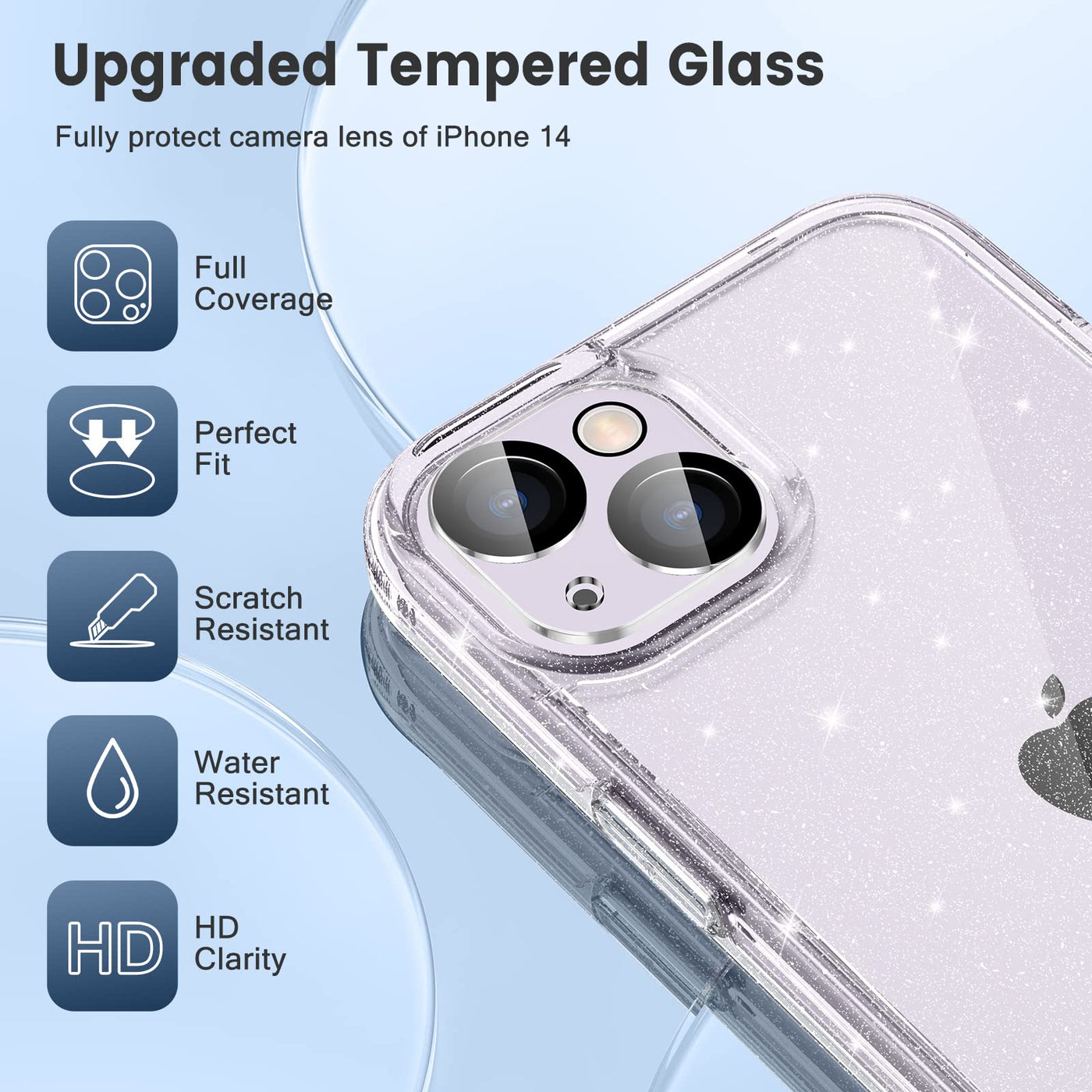Maxdara [3 In 1 For Iphone 14 Glitter Case, Iphone 14 Case With Tempered Glass Screen Protector And Camera Lens Protector Drop P
