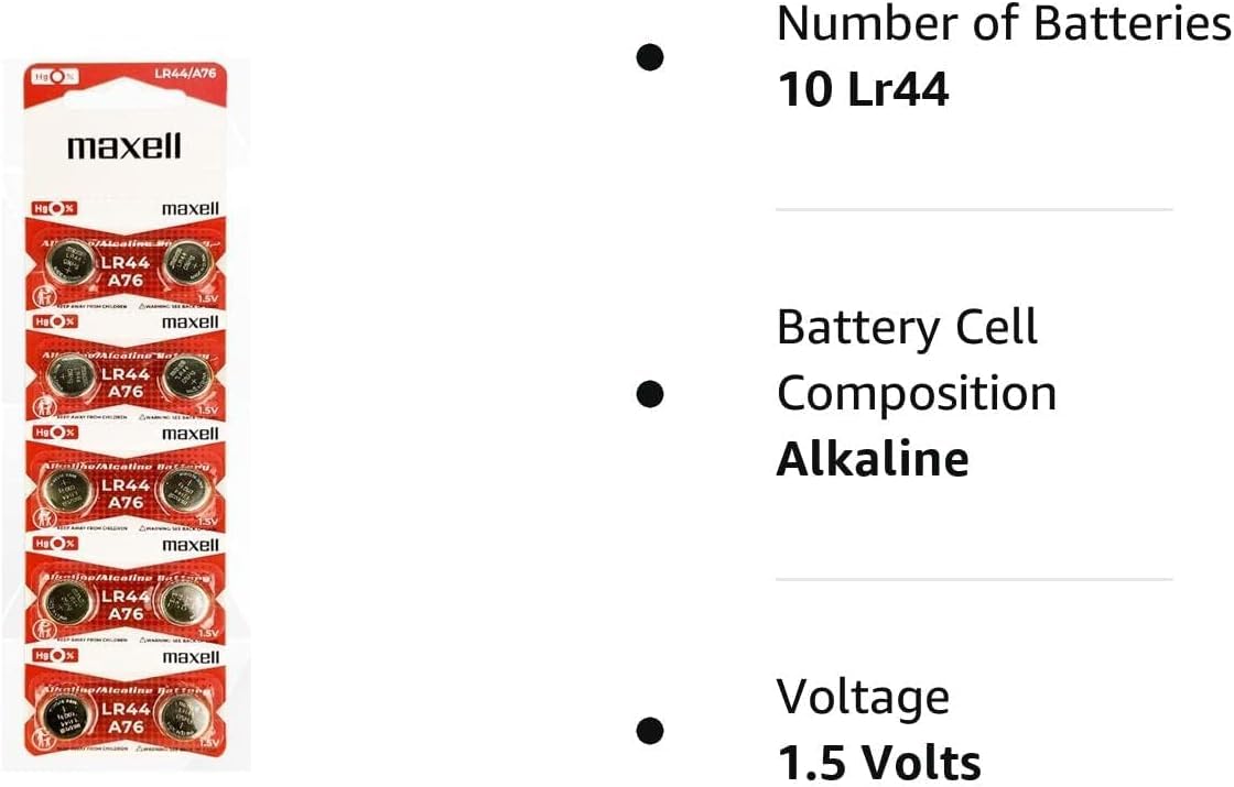 Q: What devices are compatible with Maxell LR44 (A76) batteries?A: Maxell LR44 (A76) batteries are commonly used in devices such as laser pointers, watches, children's books, calculators, and medical devices, making them a versatile choice for powering small electronics.