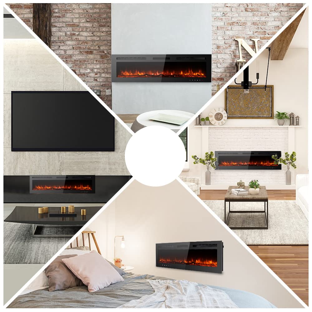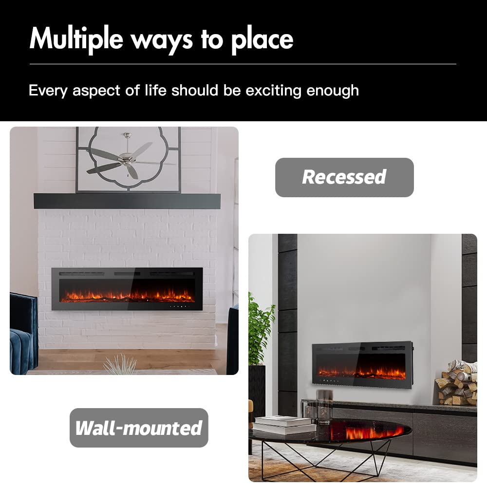 Maxhonors Purpose: Quality Suppliers, Quality Products, Affordable Price! Choose Maxhonor, Enjoy Your Life! Modern Electric Fireplace Is A Perfect Addition To Your Contemporary Living Room, Bedroom, Dining Room And Office. Just Sit Down, Relax And Enjoy The Cozy Warmth And The Gorgeous Ambiance. One Fireplace, Three Options: This Fireplace Can Be Recessed In Wall, Wall Mounted Or Used As Free-Standing Fireplace With The Legs In Package. Brighter And Realistic 12 Flame Color Options: 12 Changeable Flame Color (Yellow, Green, Blue, White, Yellow & Green, Yellow & Blue, Yellow & White, Green & Blue, Green & White) Color Cycling And Off. 5 Flame Brightness Setting, From A Soft Ember Glow To A Full Blazing Brightness. Can Work As Non-Heat Fireplace, Adjustable Temperature Settings From 62F To 82F, Timer Setting From 1H To 8H. Remote Control & Manual Panel Control: Convenient Remote Control, Including: On/Off, Heater , Color Changed Control, Temperature Control. One Year Warranty: Cetl Certified, Safety Cut-Off Device For Overheat Protection, Safe For Kids And Pets; Easy & Quick Installation. Free Replacement For Installation Problems,Damage And Missing Parts. Specification: Color: Black Voltage: Ac 120V Watts:750W/1500W Temperature: 62F To 82F Timer Setting: 1H To 8H Flame Color: 12 Options Brightness Setting: 5 Options Q&A: How To Change Color? ------Press And Hold The Brightness Setting Button For 5 Seconds Than You Can Change Colors. Please Note: It Is Recommended That This Fireplace Be Positioned At Least 12 Inches Below The Ceiling. Avoid Mounting It Directly Under A Flat-Screen Television, As That May Limit The Heater S Use.