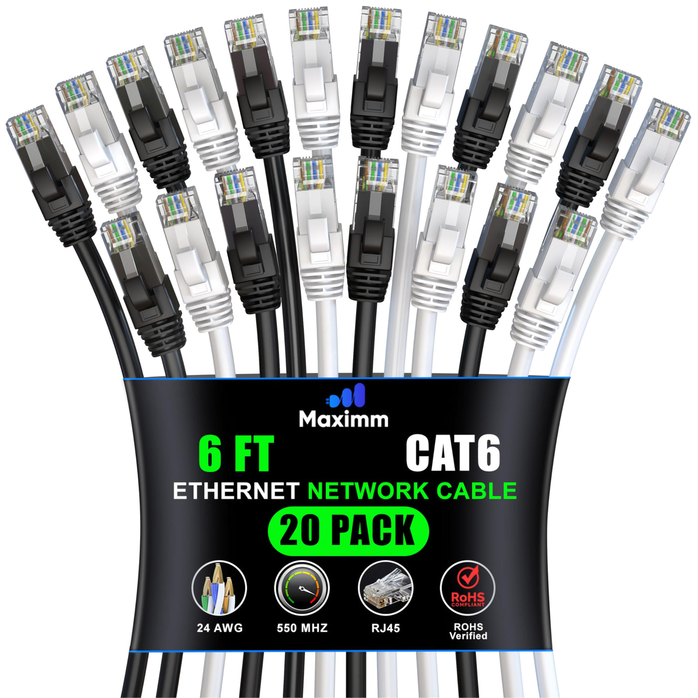Maximm Cat 6 Ethernet Cable 6 Ft (20-Pack) - High-Speed Lan Cable, Internet Cable, Patch Cable, And Network Cable - Utp, 10Gbps,
