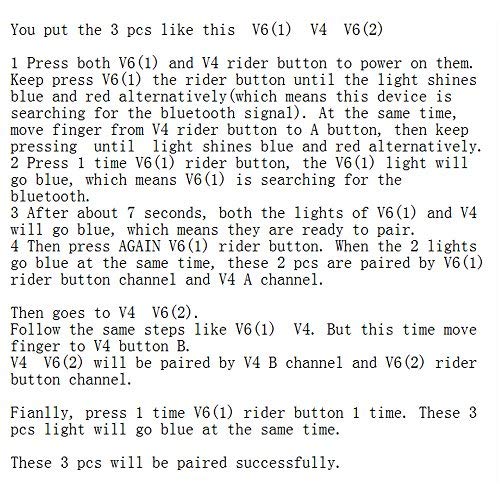 Descriptions This Professional Referee Headset Football Wireless Headsets Enable 2/3/4 Referees To Listen And Talk At The Same Time While Arbitrating During Football Games With Clear Instrction And Conversation. ???We Have Pairing Video, See Below Link: Https://Youtu.Be/Vzjihsaiocc (We Also Have 4 Referee Headset, Check Asin B0768Ztnsg) Features ? Three Users Real-Time Referee Headset Football Wireless Headsets Communication ? No Need Hot Keys Referee Headset Football Wireless Headsets, Easy To Use ? Memory Pairing Referee Headset Football Wireless Headsets, Simple And Easy. ?Hi-Fi Sound Referee Headset Football Wireless Headsets ? High-Power Football Referee Communication, Which Can Be Used In A Noisy Environment. Stereo Hi-Fi Headset ? National Level 5 Waterproof Standard Referee Headset Football Wireless Headsets Specification Referee Headset Football Wireless Headsets Bluetooth Version: Bluetooth 3.0 Referee Headset Football Wireless Headsets Chip: Csr Bc5 Referee Headset Football Wireless Headsets Battery Capacity: 550Mah Speaker Power: 0.25W Rds: No Referee Headset Football Wireless Headsets Battery Type: Polymer Lithium Battery Referee Headset Football Wireless Headsets Waterproof Grade: National Level 5 Waterproof Standard Automatic Volume Adjustment: No Football Referee Communication Operating Voltage: 3.3V-4.2V Football Referee Communication Talk Time: 8H Football Referee Communication Working Temperature: -10-45 Degrees Celsius Charging Time: 2.5Hour Standby Time: 150Hour Package: 2X V6 Referee Headset Football Wireless Headsets 1X V4 Referee Headset Wireless Headsets3X Refereee Earphones 3X Charging Cables 3X Arm Bags Warranty 1 Year(Within 1 Year After You Purchase, We Supply Repair Service For Free) If You Need The Accessories For This Intercom, You Can Contact With Us.