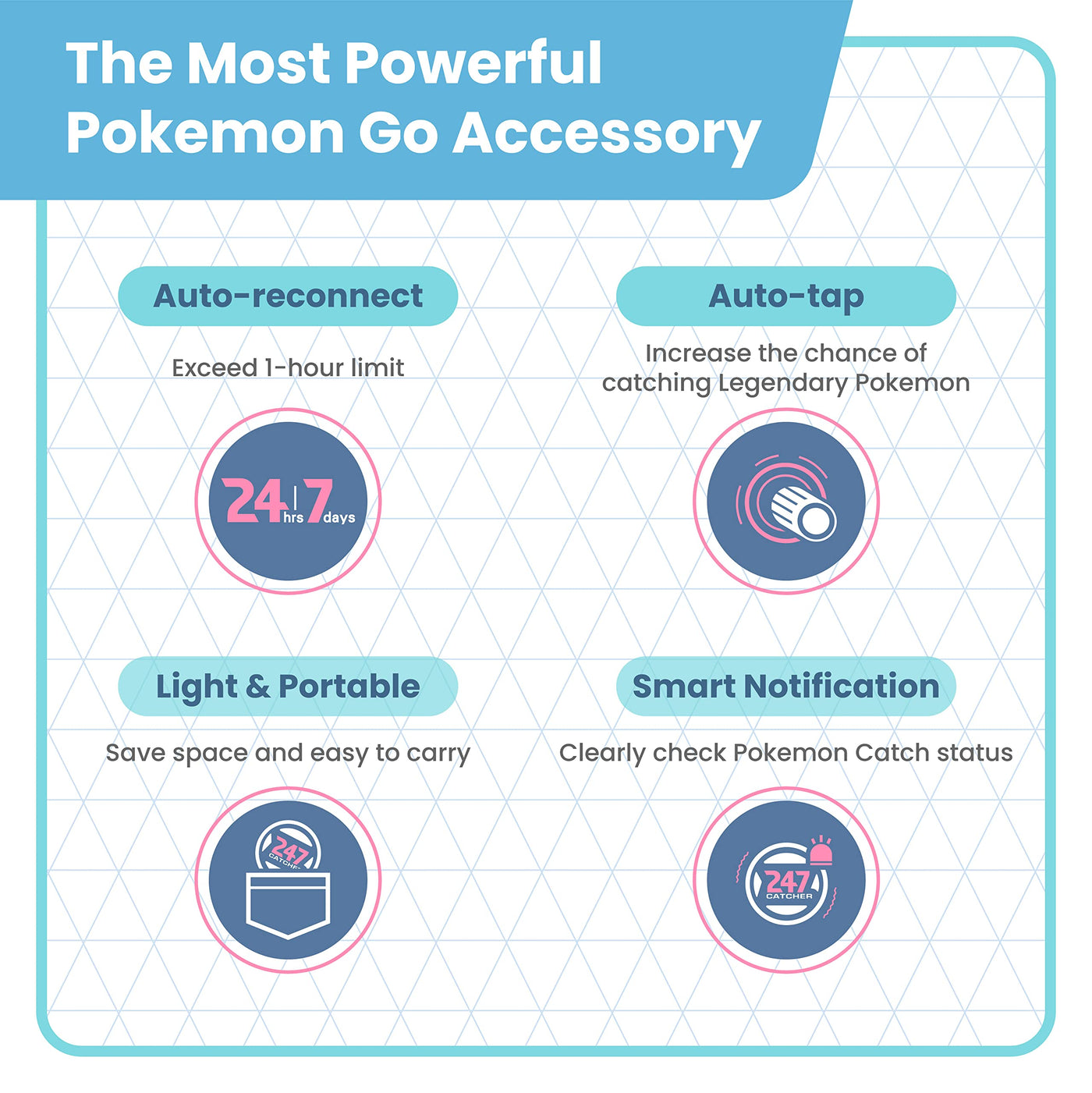 Description:The 247 Catcher Is The Worldas First Poke Mon Go Auto-Tap Catcher That Solves The 1-Hour Connection Limit For Those That Play With A Third-Party Auto-Catcher, It Is Often Incredibly Hard To Keep The Device Connected To The Game For Over An Hour, The 247 Catcher Now Provides A Solution To That Problemspecifications:-Connection: Bluetooth 42-Battery: 400Mah Lithium Battery-Charging Time: About 2 Hours-Battery Usage: About 120 Hours-System Requirement: Smart Phone With Lower Power Consumption Bluetooth And Poke Mon Game Installed: Iphone 7 Or Above With Ios 12 Or Above Android 70 Or Above With Min 4Gb Ram And Bluetooth 40 Or Abovenote:-To Overcome 1-Hour Connection Limit, A247A Mode Must Be Used And Mobile Phone Screen Must Be Always Aona For Action (Please Close The Screen Saverbattery Saving Mode)-For Other Settings, Please Refer To The Manual For Detailspackage Included:1 X 247 Catcher1 X 247 Cable With Suction Cup1 X Auto Tap Holder1 X Type-C Charging Cable1 X Storage Case1 X Manual