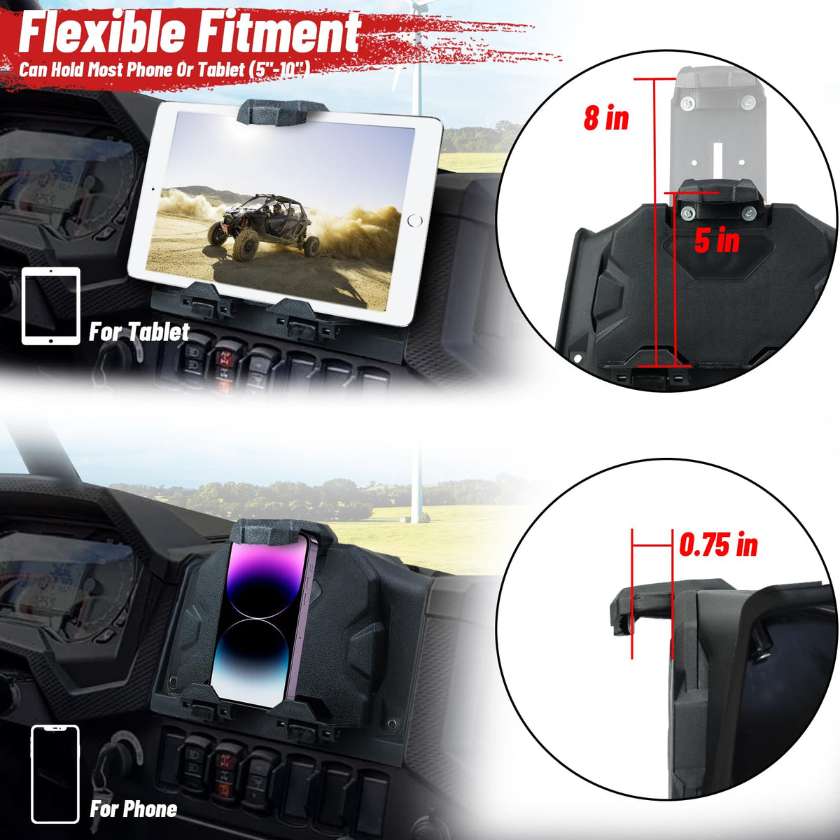 Mdpromcp Electronic Device Mount Adjustable Rzr Tablet Holder Gps Phone Mount With Storage Box Compatible With Polaris 2019 20