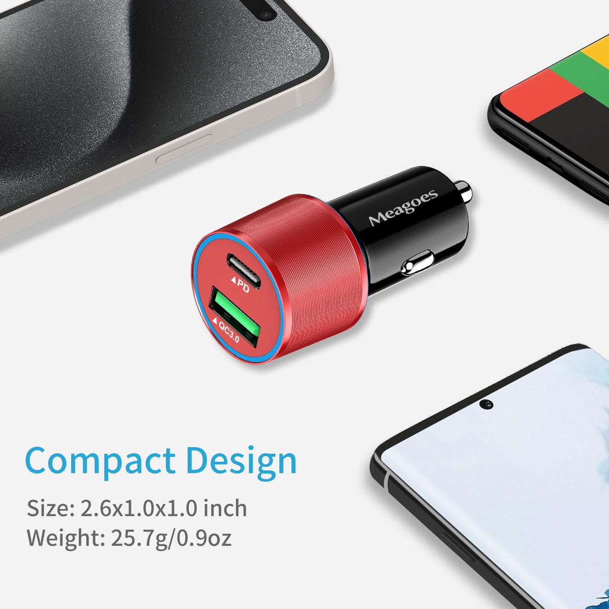 Meagoes Red Usb C Car Charger, 48W 2 Port Fast Charging Adapter With Pd&Qc3.0 Compatible For Iphone 16/15 Pro Max/Samsung Galaxy
